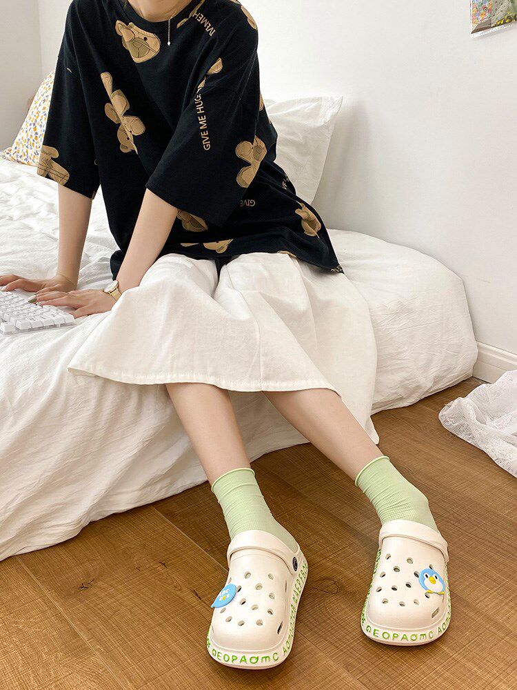 New 2020 new thick-soled hole shoes outer wear non-slip semi-baotou dormitory dormitory summer work beach trendy women drag good