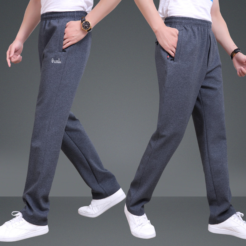 Spring and autumn middle-aged and elderly cotton sports pants men's loose large size straight elastic pants dad casual trousers