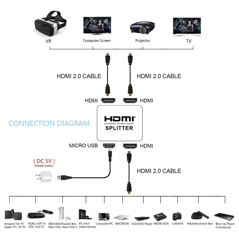 HDMI splitter 1 in 2 out split screen device one point two HD audio converter one drag two switcher splitter