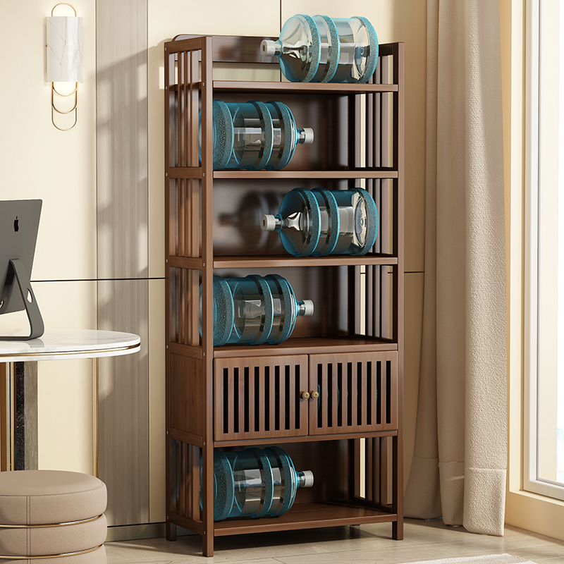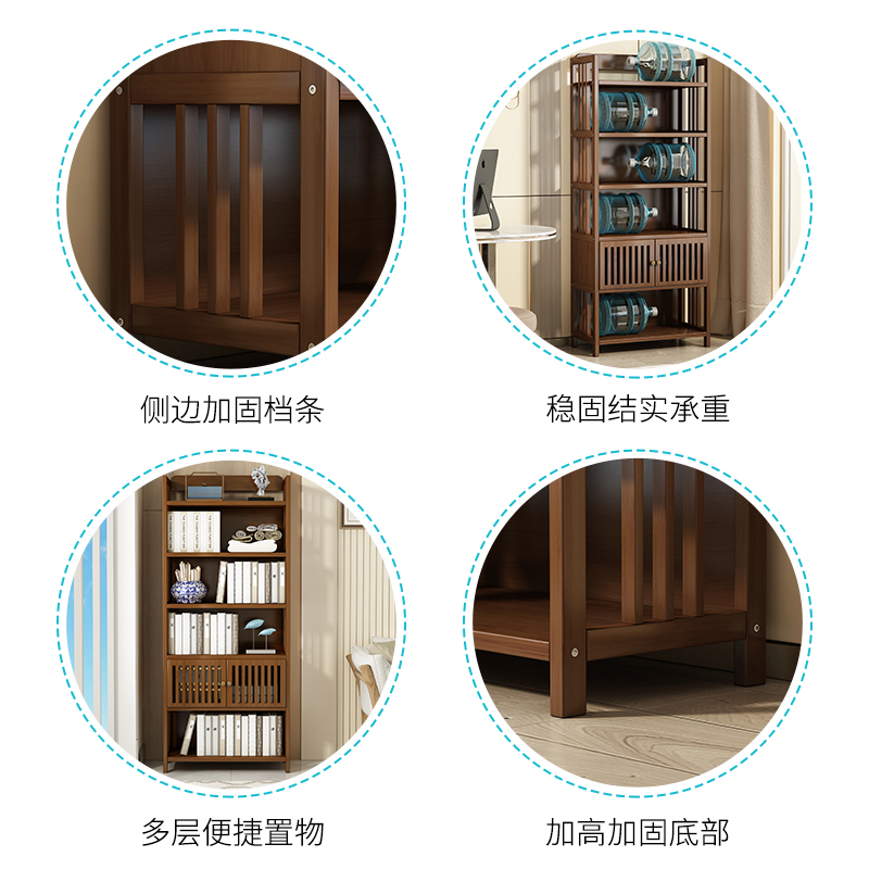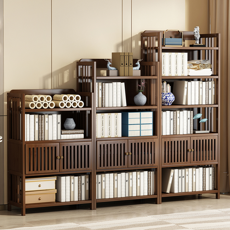 Solid wood Nanzhu partition shelf with door tea room Multi-layer tea cabinet Floor-to-ceiling light luxury small storage bookcase bookcase
