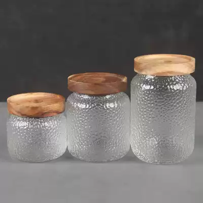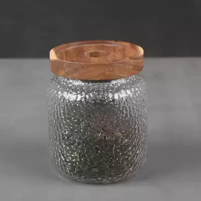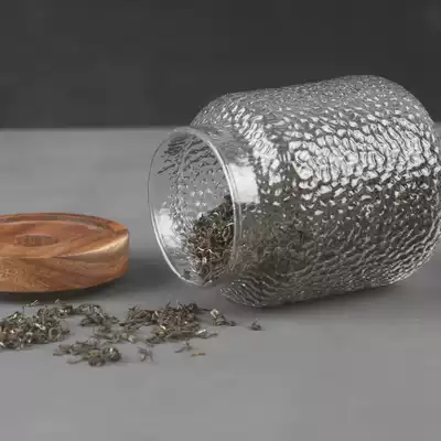 Liuhtang Acacia wood glass tea jar transparent hammer grain wood cover storage tank household moisture-proof food storage tank