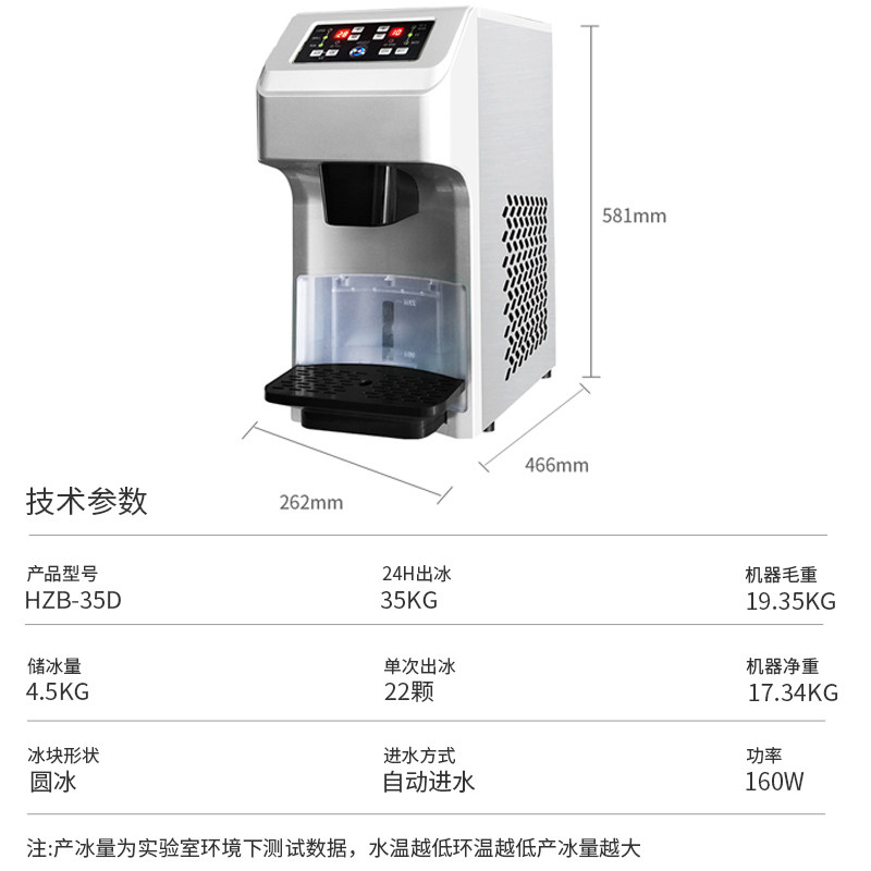 Wellcome ice maker commercial small household milk tea shop coffee shop HZB-35kg automatic round ice cube maker