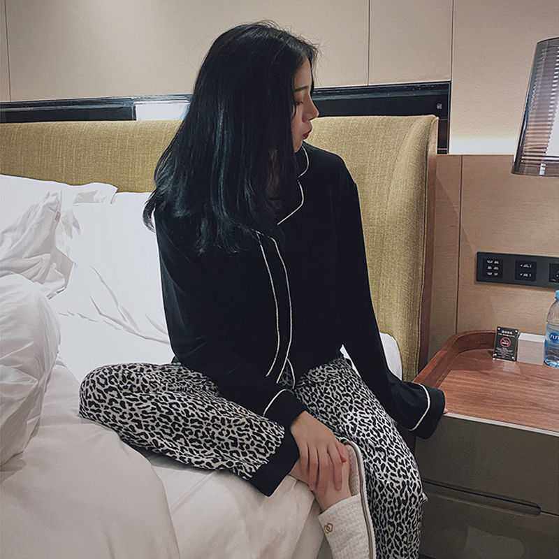 Long-sleeved pajamas women's spring and autumn suits students ins Korean version of loose net red home clothes new can be worn outside