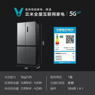 Yunmi 513-liter cross four-door door household frost-free energy-saving frequency conversion smart four-door maternal and infant refrigerator