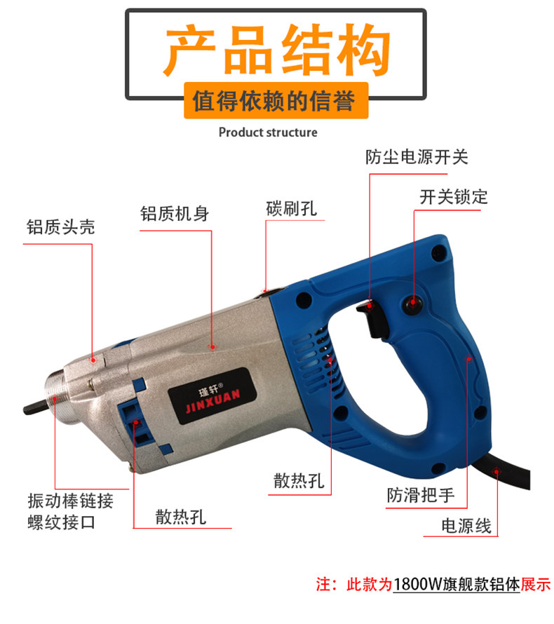 Jinxuan small portable concrete vibrator construction site concrete vibrator cement vibrator single-phase 220V