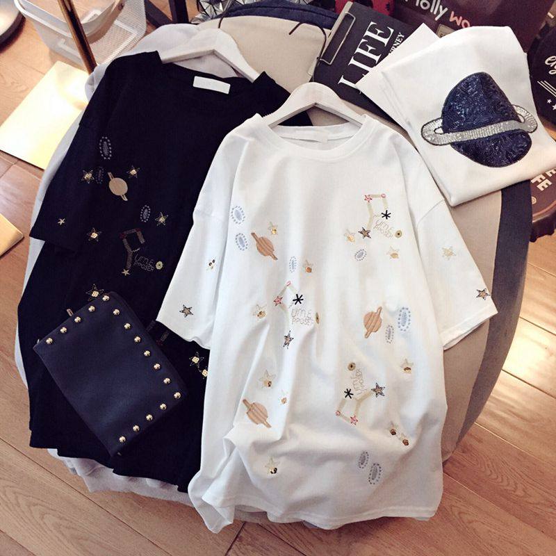2022 new Korean version of cotton short-sleeved t-shirt women's mid-length version of loose casual wild white top spring and summer tide
