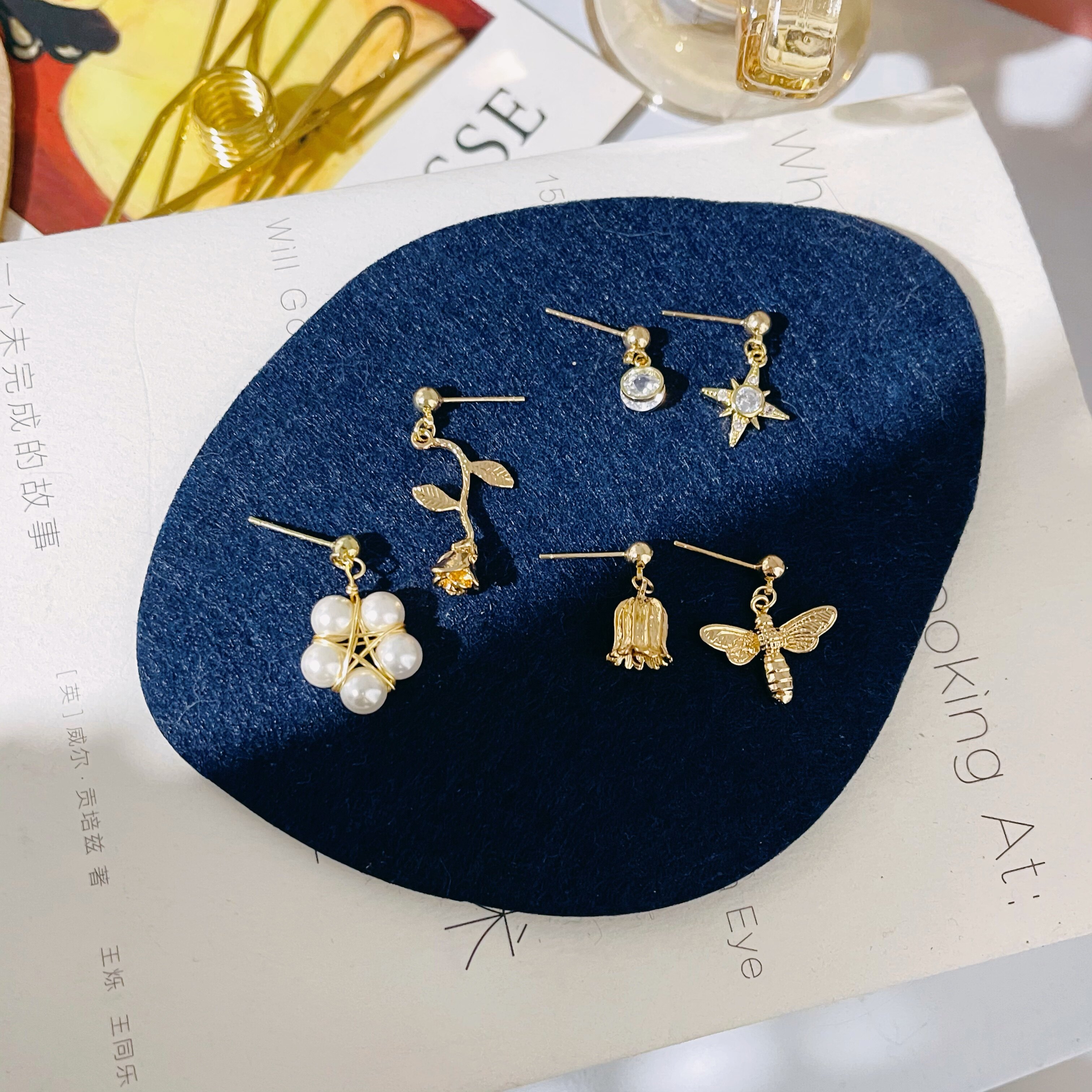 Mother Bay Pearl Pentagram earshot a pair of small bee earshot pair pair of asymmetrical Haolith earshot pair pair of asymmetrical rose ear pins a pair