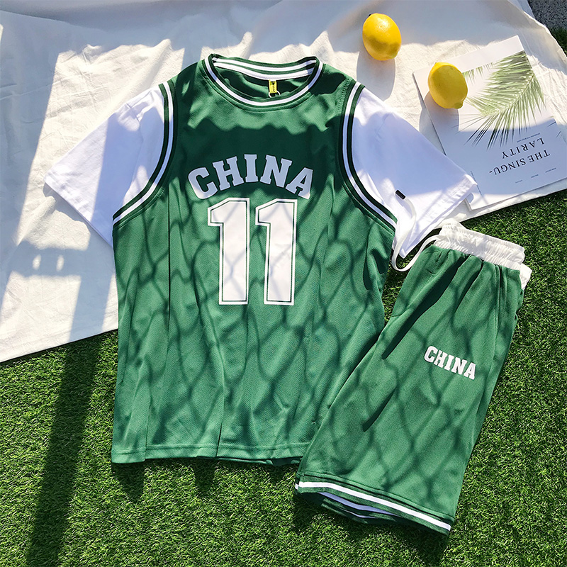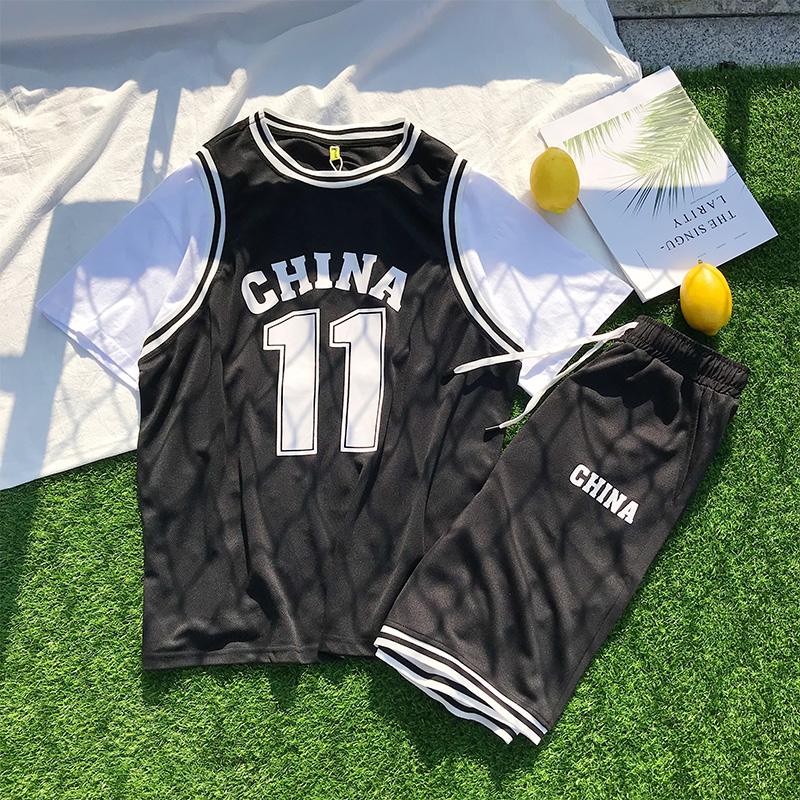 Summer sports suit Men and women Korean version Trend 100 lap loose training to wear jersey short sleeve T-shirt shorts Two sets