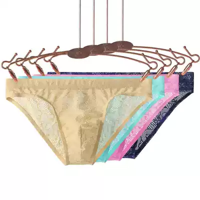 Men's underwear lace fabric 12 transparent breifs low waist sexy Ice Silk breathable tide men Youth trousers
