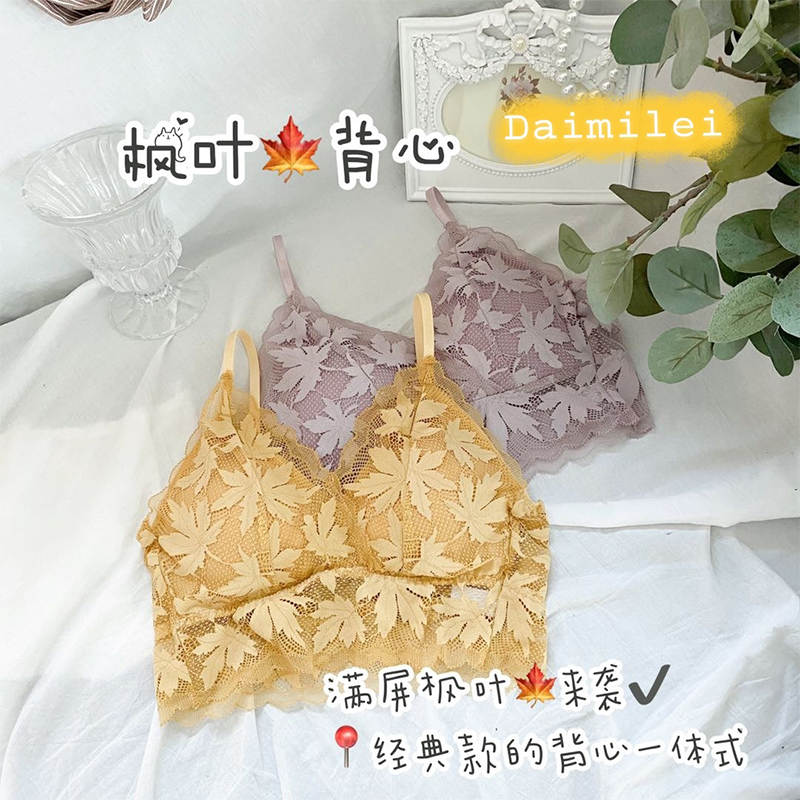 Lace Beating Bottom Harness Vest Woman Little Chest Hitch With Chest Cushion Net Red Popcorn U Type Beauty Back One-piece Bra Summer