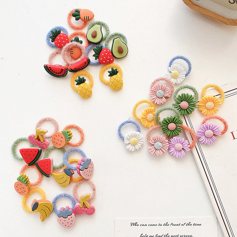 1#草莓髮圈10件套 2#香蕉髮圈10件套 3#香蕉髮圈10件套#恐龙髮圈10件套 4#粉色罗蔔髮圈10件套 5#白色花朵髮圈10件套 6