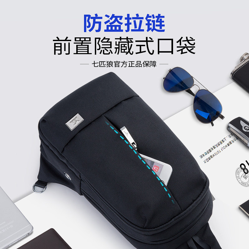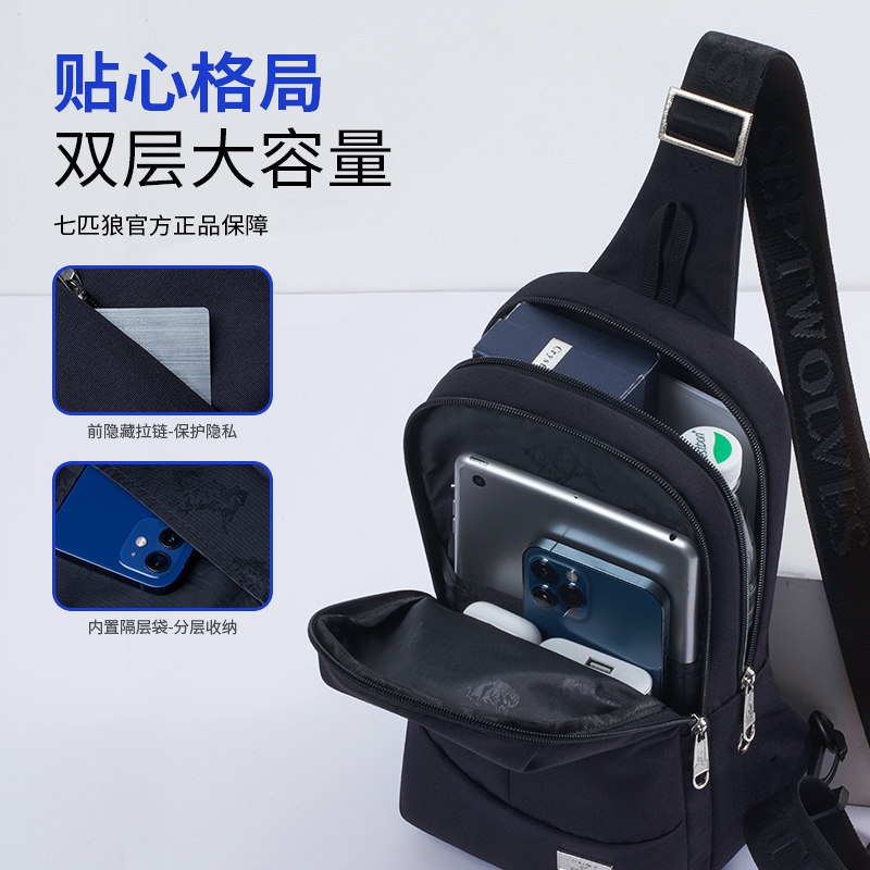 Seven Wolves Chest Bag Men's Large Capacity Men's Bag Sports Casual Single Shoulder Bag Women Midyear Tide Skew Satchel Handbag