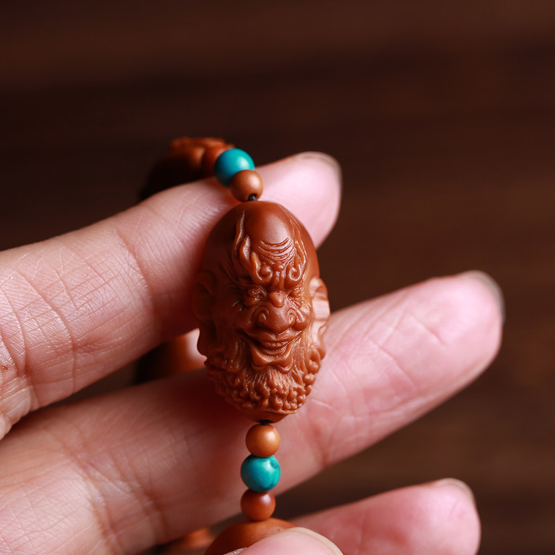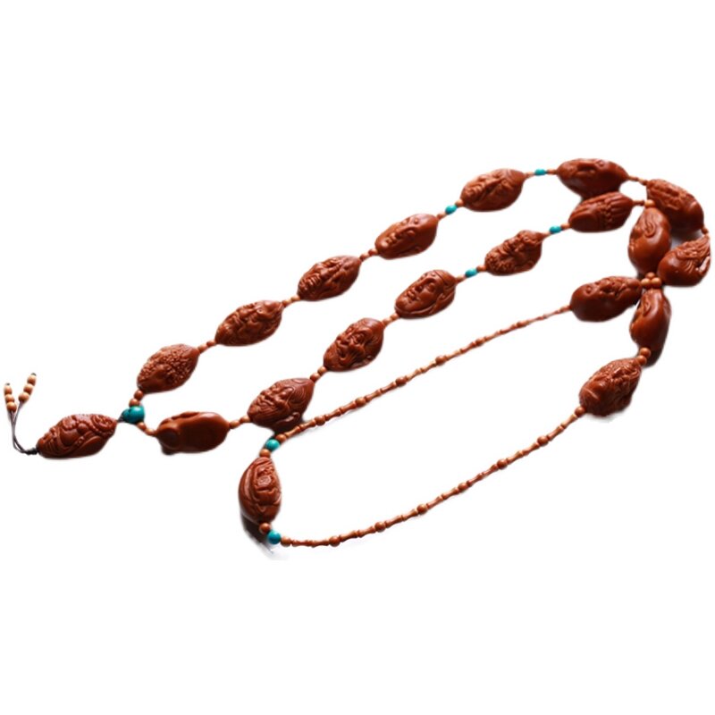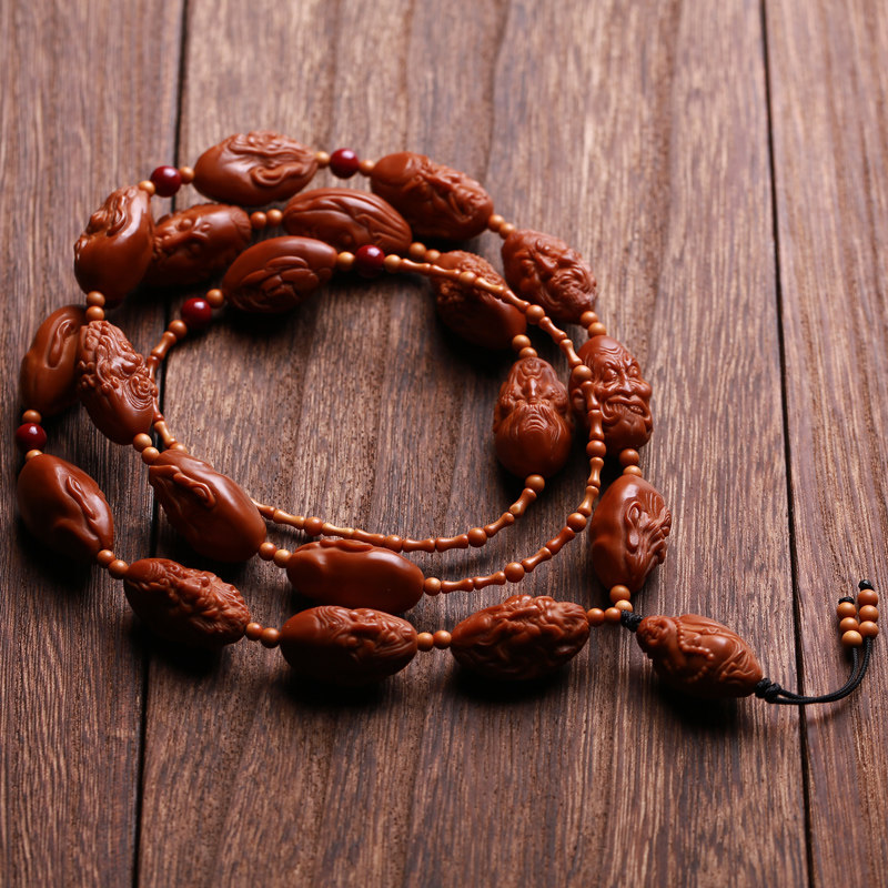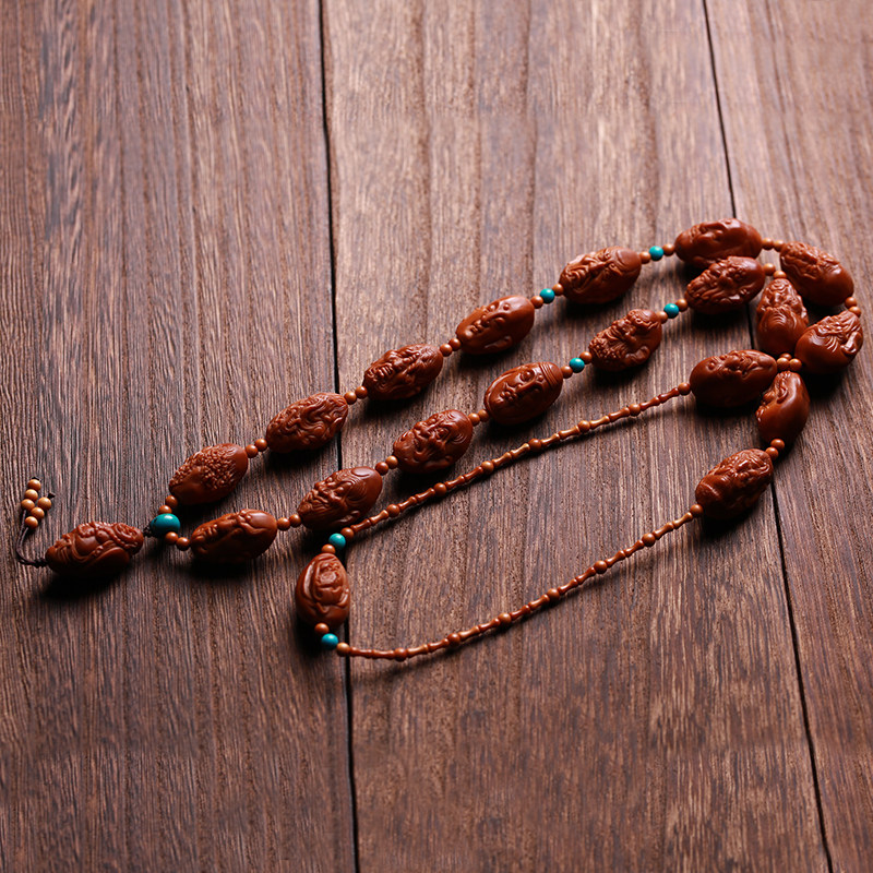 Olive core one-sided eighteen arhat long string neck hanging necklace olive beard carving hand string male and female literary play Su Gong