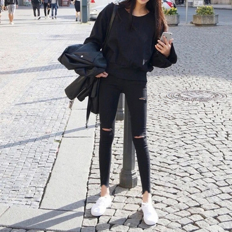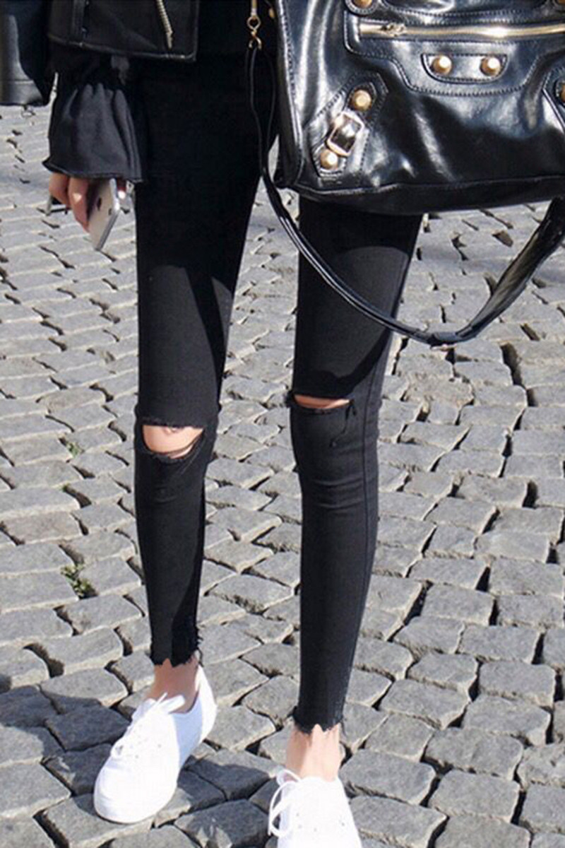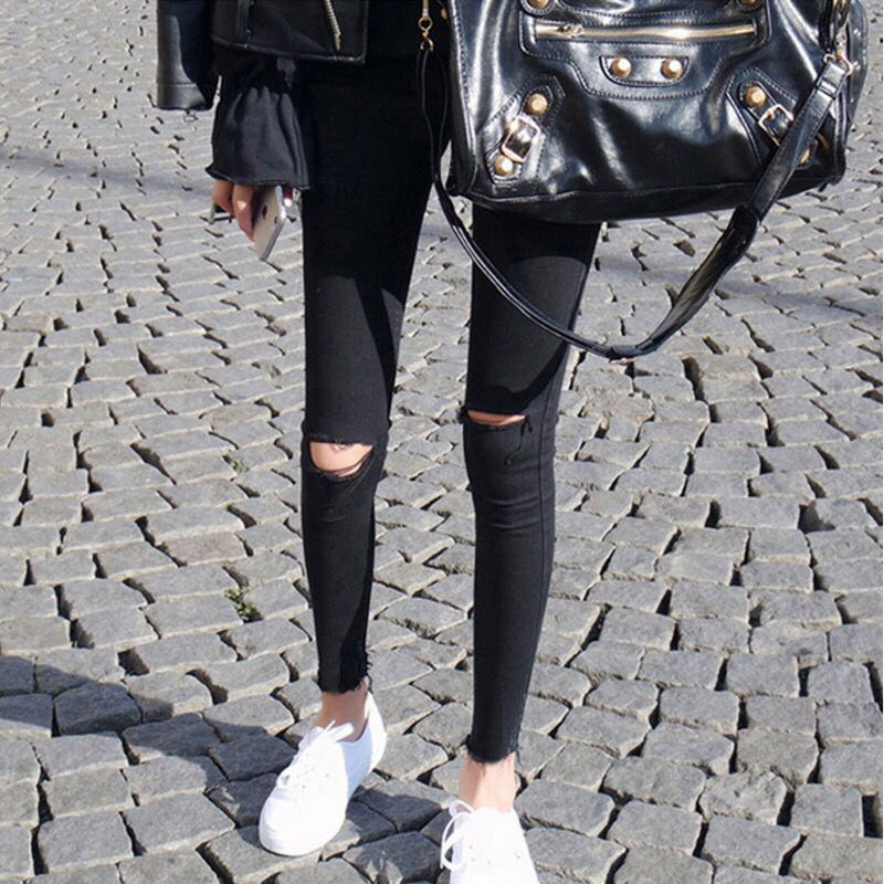 Pregnant Woman Pants Spring Fall Outside Wearing Smoke Pipe Pants Fall Fashion Tide Moms Belly Up Pants Breaking Holes 90% Pants Autumn Clothing