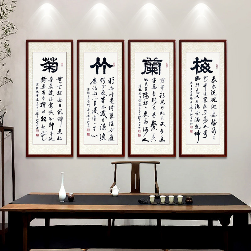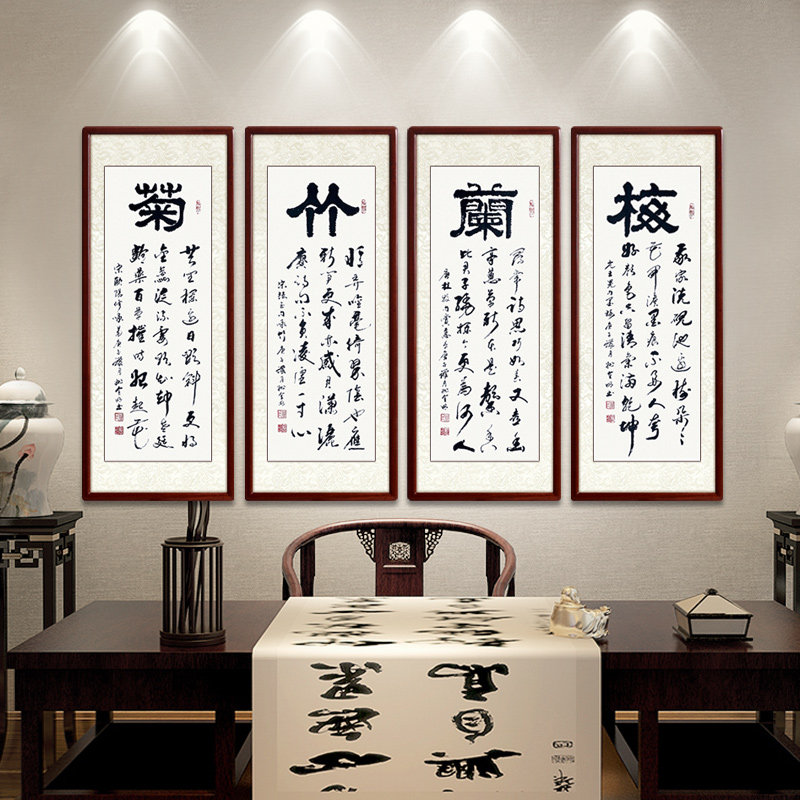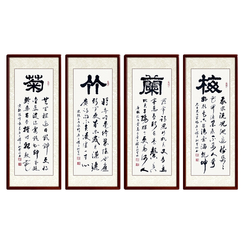 Meilan bamboo and chrysanthemum calligraphy Four screen hanging paintings Famous handwriting authentic custom calligraphy and painting Living room study decorative painting