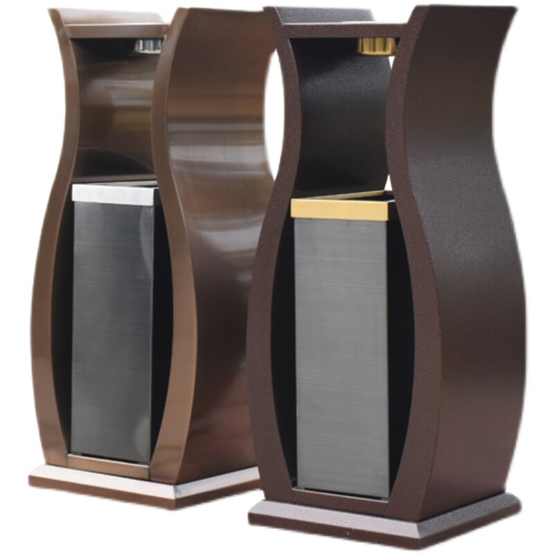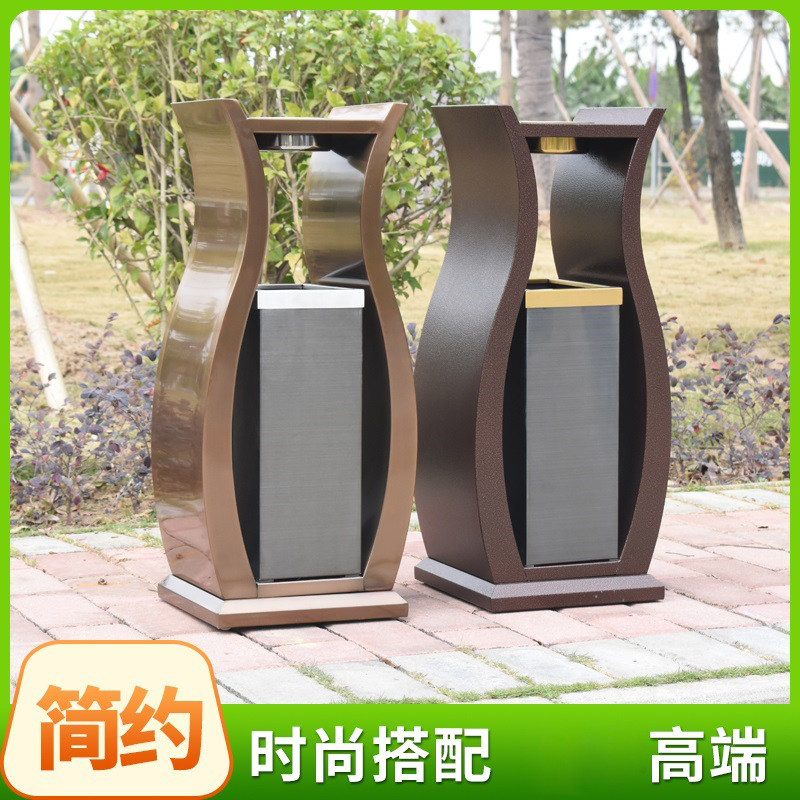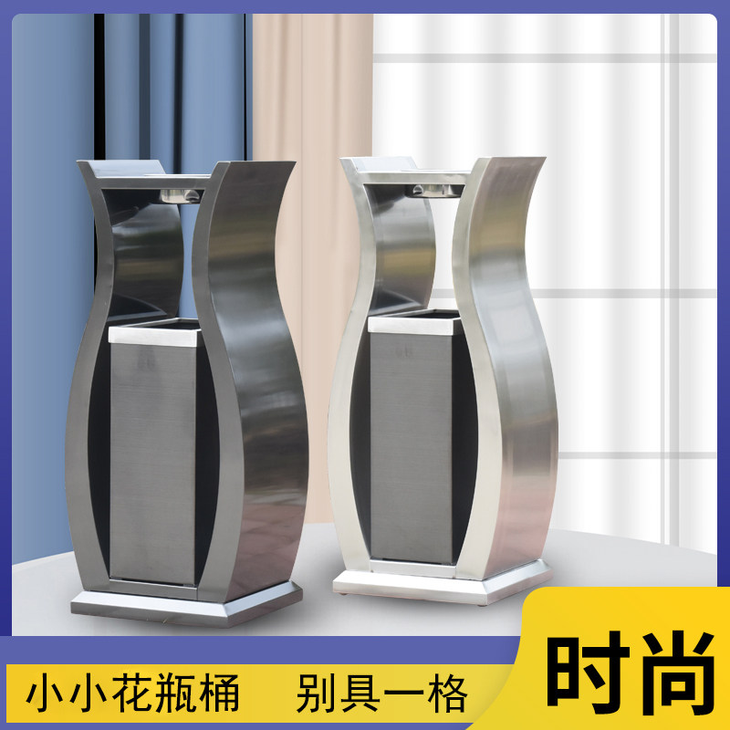 Simple fashion vase trash bin Hotel lobby elevator vertical barrel outdoor with ashtray metal barrel
