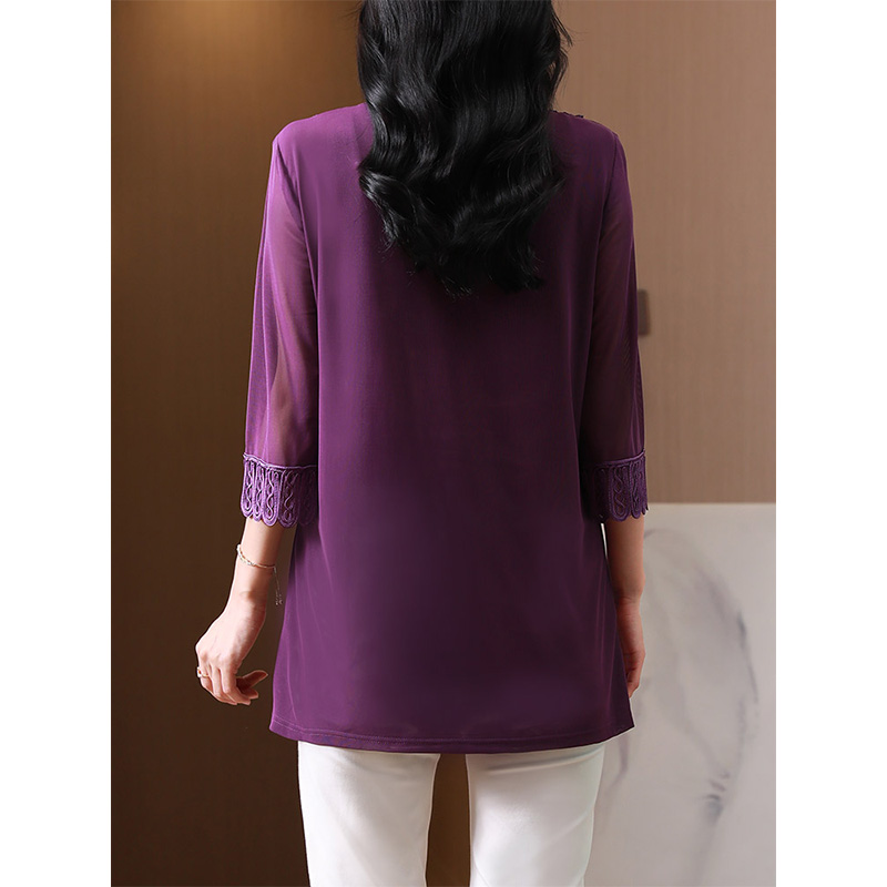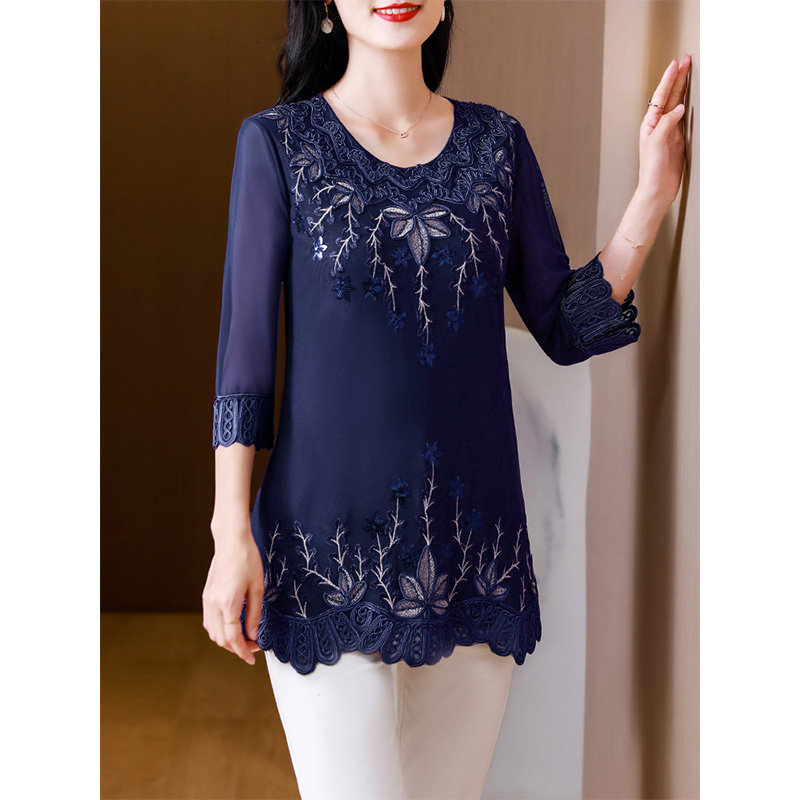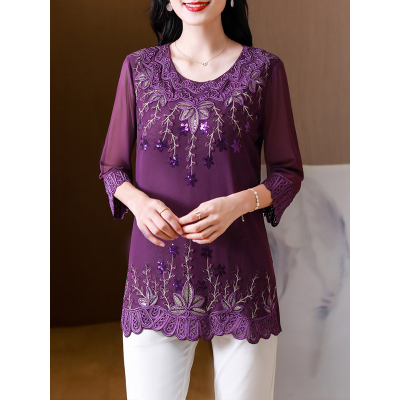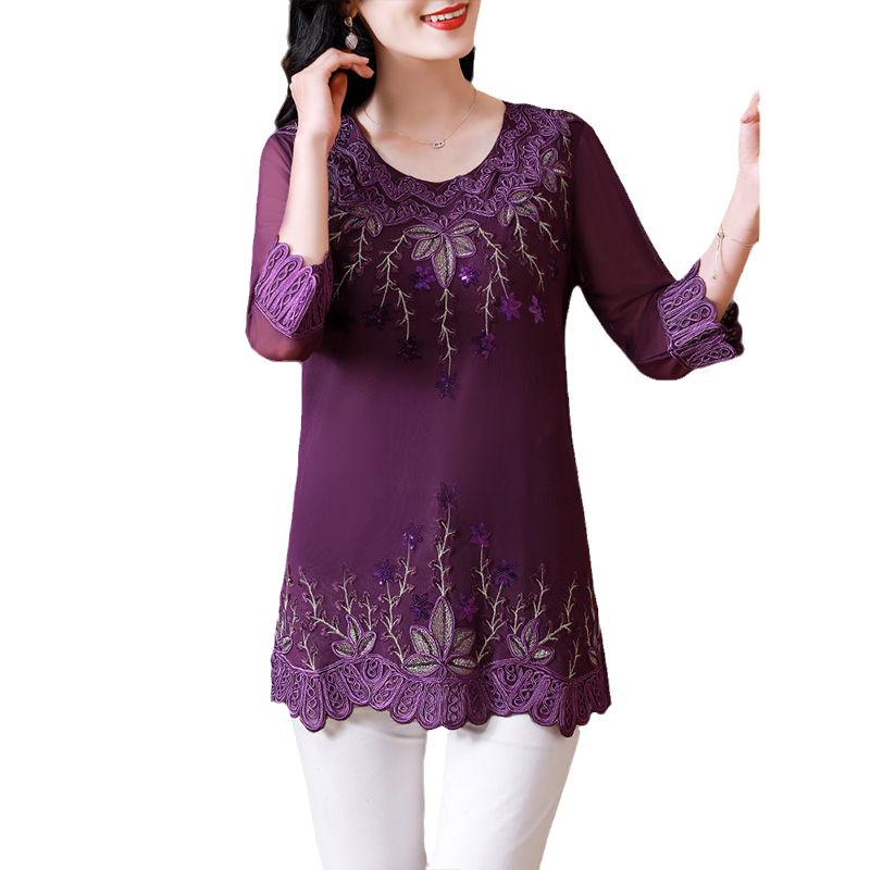 Middle aged mother Spring loaded embroidery Heavy work blouses in older women's clothing Snowspinning 70% Sleeve Small Shirts FLOWERS New