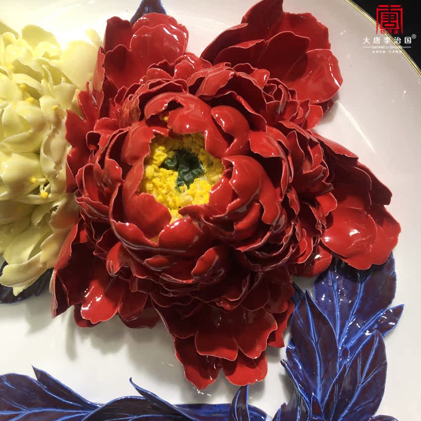 Luoyang Peony porcelain ornaments 14 inch 2021 New Bo ancient frame TV cabinet ceramic crafts high-grade gift customization