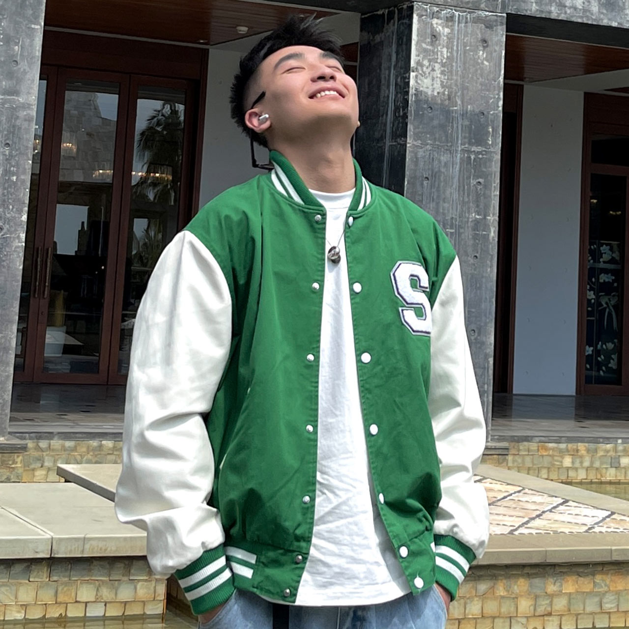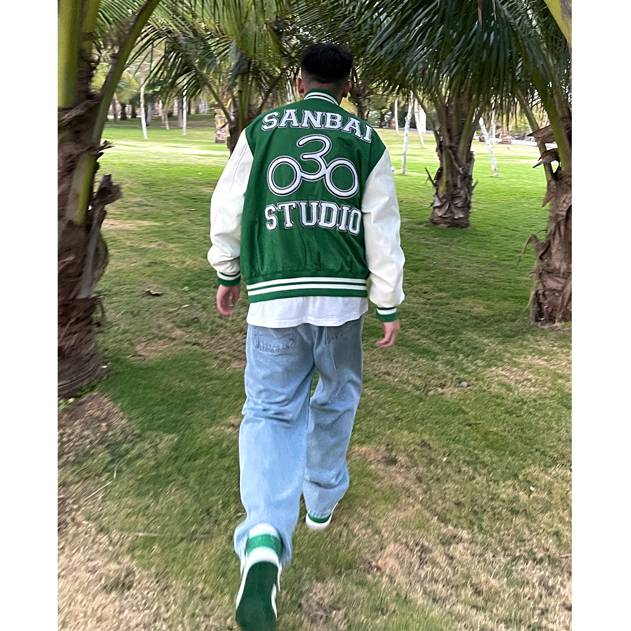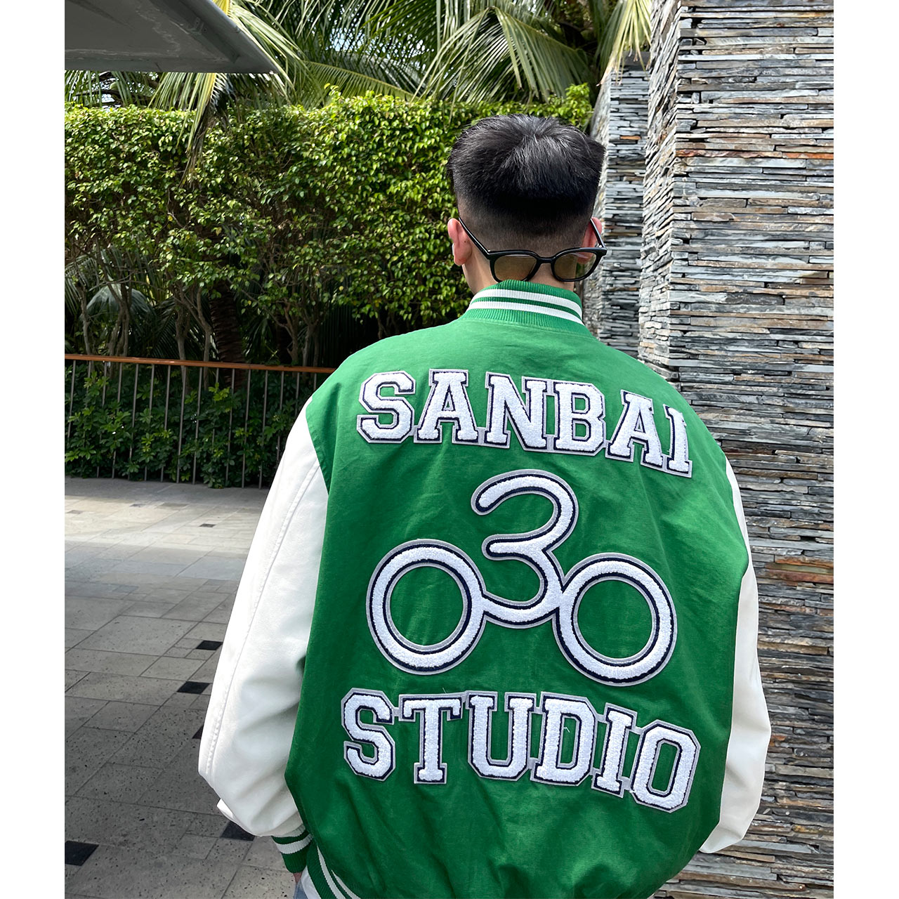 SANBAI three hundred sports and leisure baseball uniform spring towel embroidered jacket loose boys denim jacket men's fashion