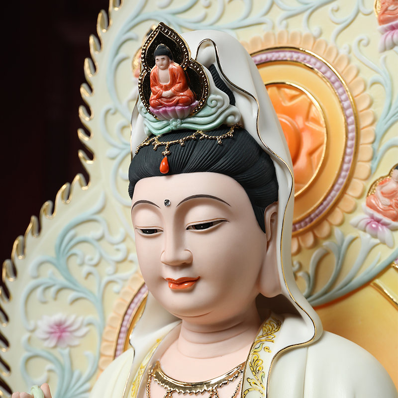 Dai Yutang ceramic ornaments "24-inch full-screen Western Three Holy Guanyin" Ameda Buddha statue home worship