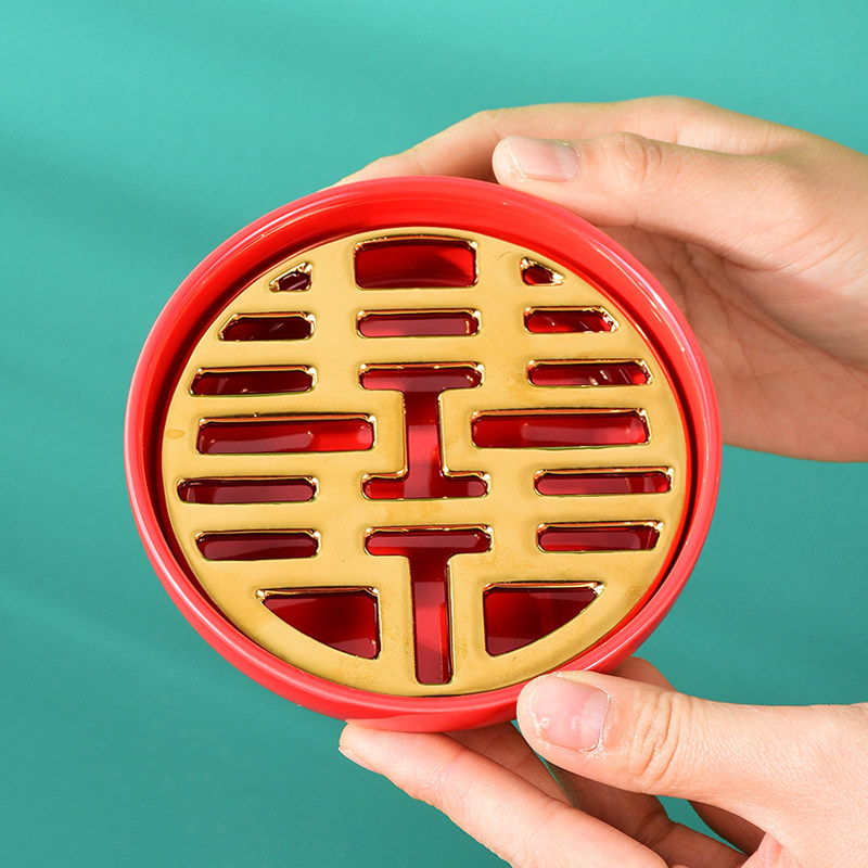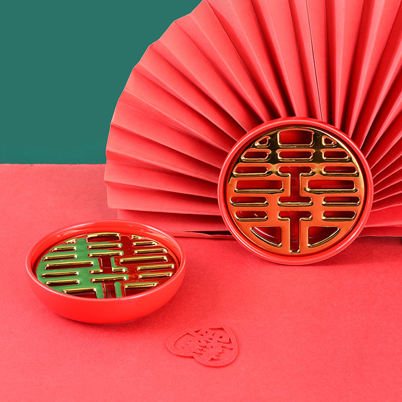 Wedding soap box creative ceramic soap box drain soap tray retro style wedding gift supplies dowry red pair