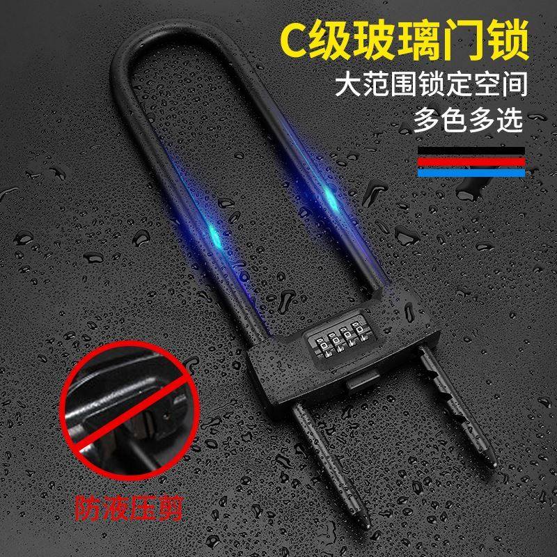 Glass door lock password U type lock Ramen double switch anti-theft cut lock shop door lock lengthened without drilling lock U shape