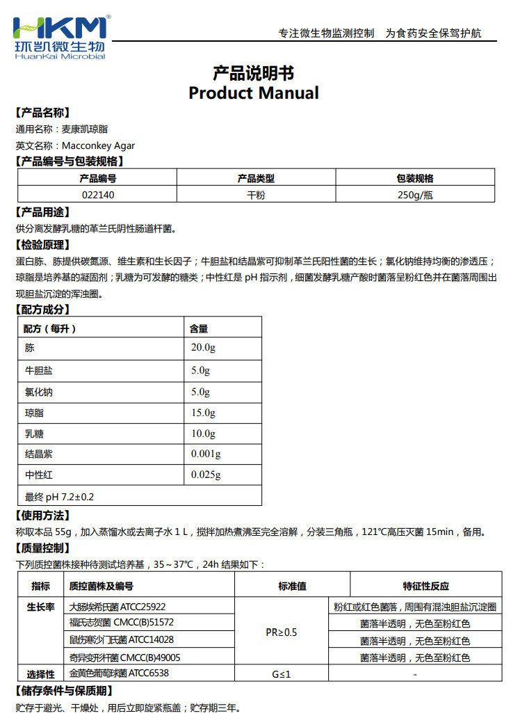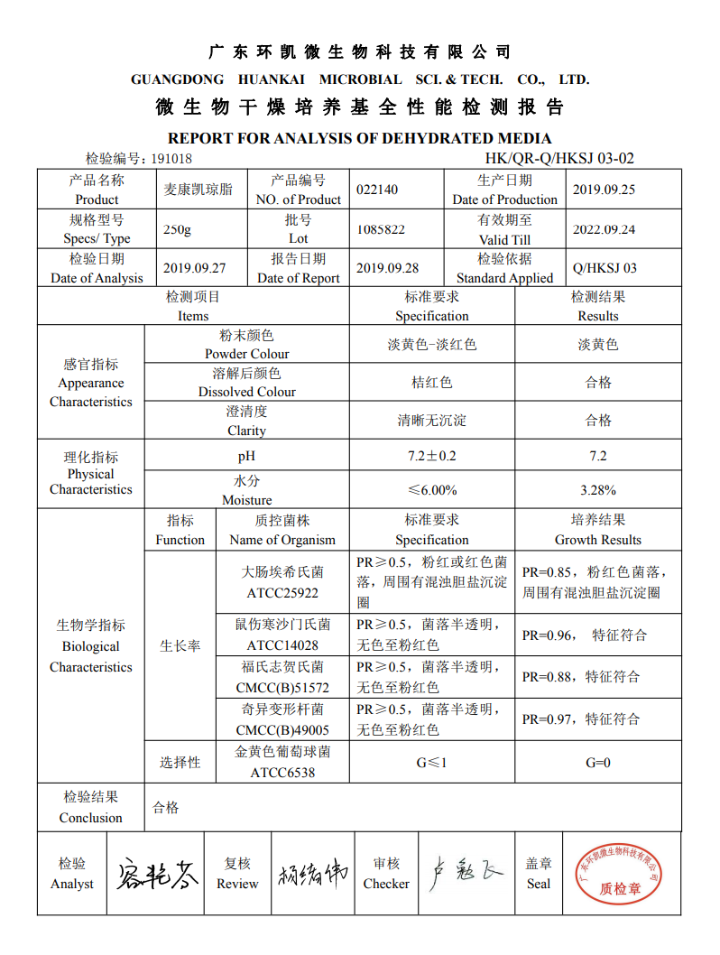 MacConkey Agar 250g Isolate Gram-negative Enterobacteriaceae fermented lactose Huankey 022140