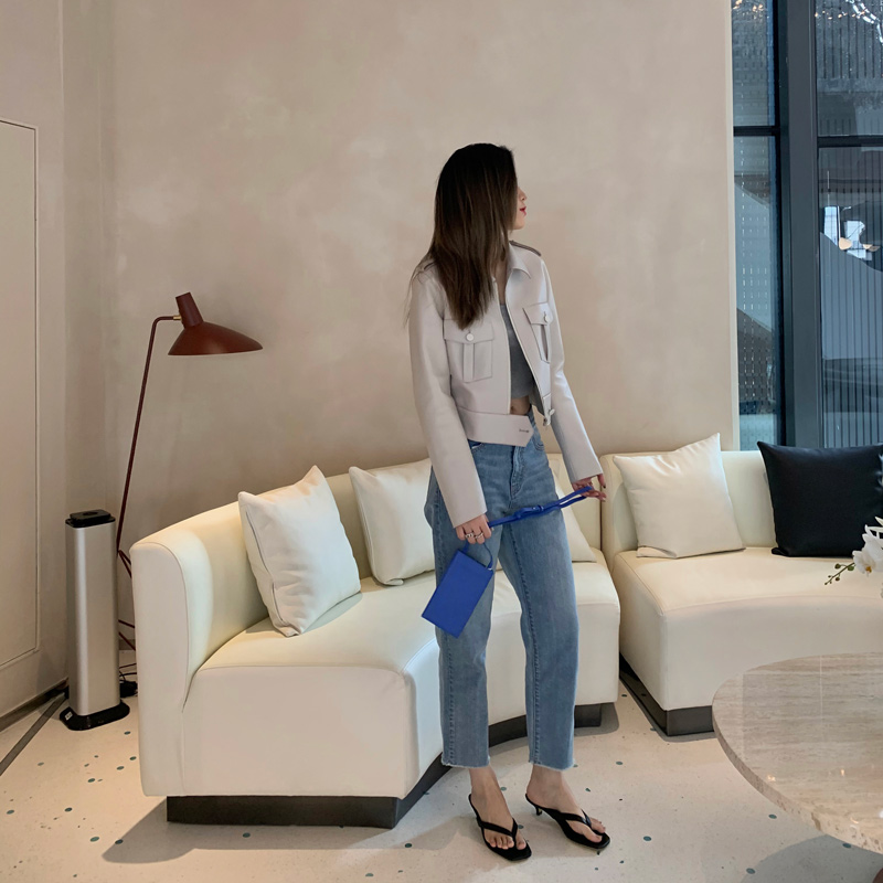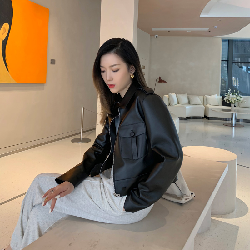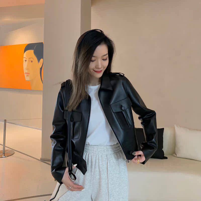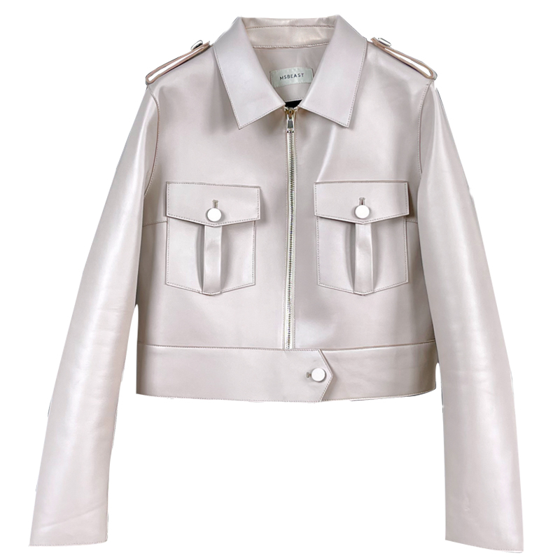 MSBEAST FLOW GOLD YEARS IMPORTED DOUBLE-LAYER SHEEPSKIN LEATHER JACKET JACKET WOMEN'S SHORT LAPEL LEATHER JACKET