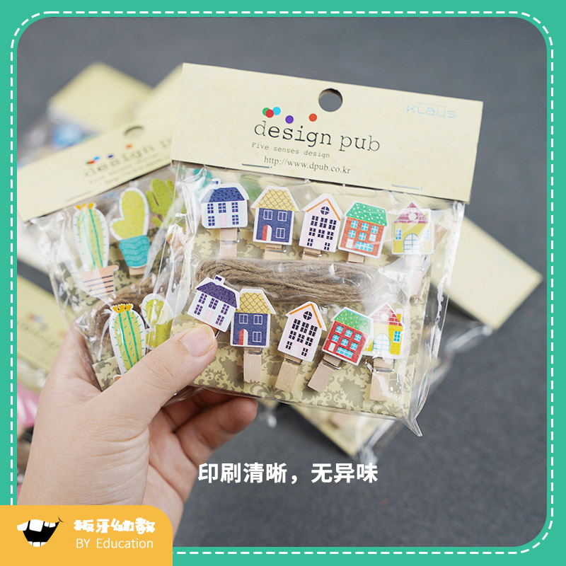 Color Wooden Clamp Kindergarten Area Material Clamp Decorated Hemp Rope Wooden Clamp Cartoon