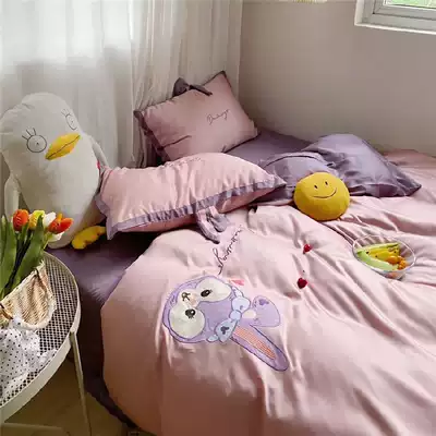 Cartoon cute Duffy Bear 60 Tencel children three Sets Summer Ice Silk cool embroidery quilt cover 1 8m bedding