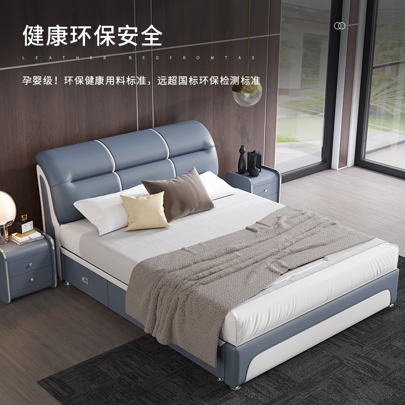 Real leather bed (nude bed) (no mattress) genuine leather bed head cabinet * 1 (no mattress) genuine leather bed head cabinet * 2 (no mattress) genuine leather bed for leather bed Coconut Palm Spring Mattress Genuine Leather Bed Comfort Latex