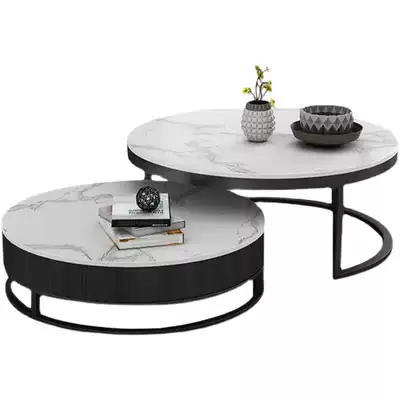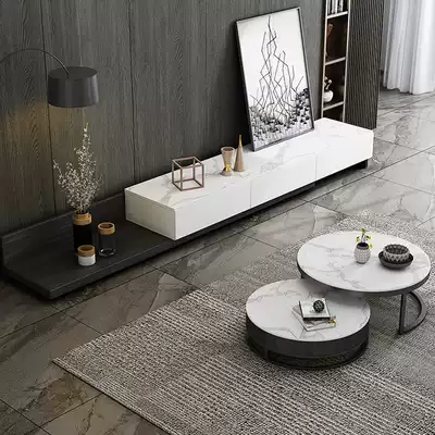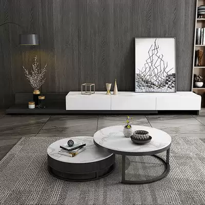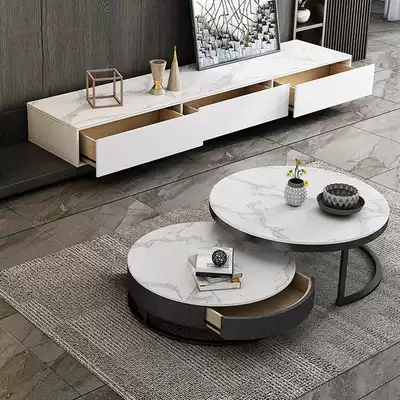 Rock plate round coffee table Italian household small apartment modern simple Nordic retractable marble TV cabinet combination