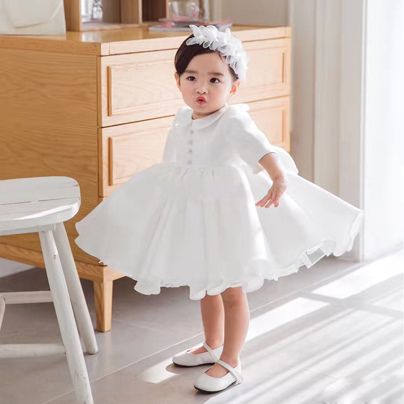 Child Flower Girl Evening Gown Girl Baby Girl's Baby Princess Skirt Pompon Birthday Hosted Performance Out Of A Long Sleeve Summer