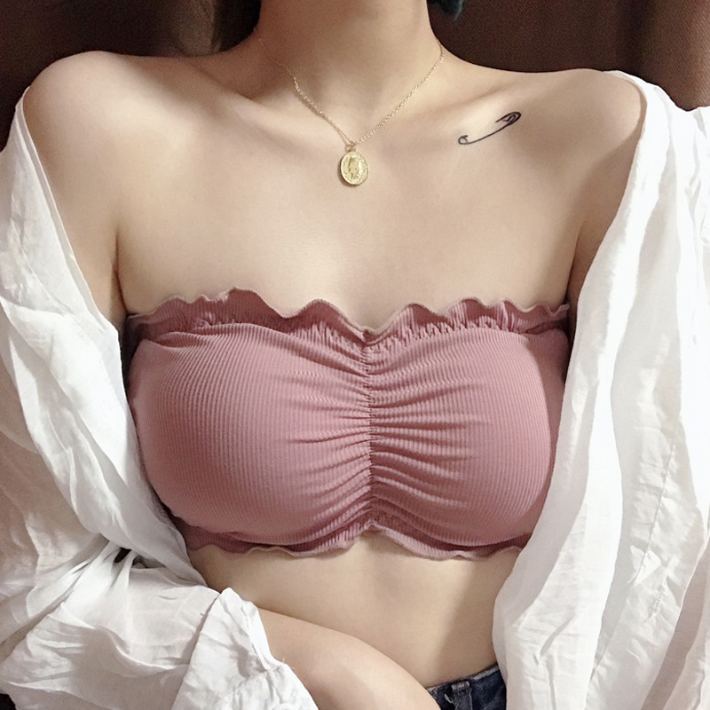 Shoulder-free Breasted Underwear Women's Summer Students White Wrap Breast back bra blouses with small breasts gathered in bra