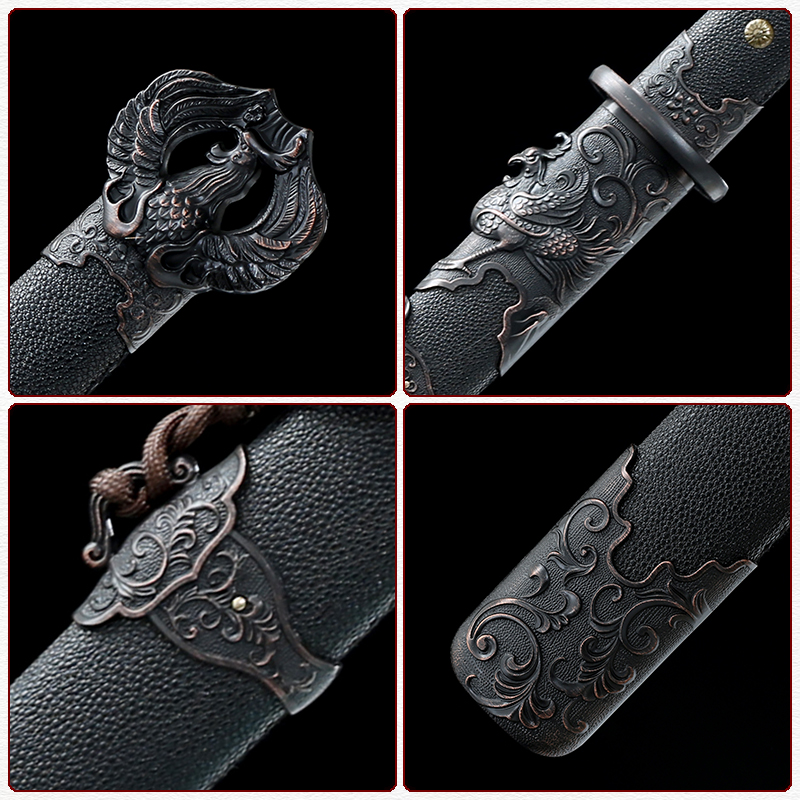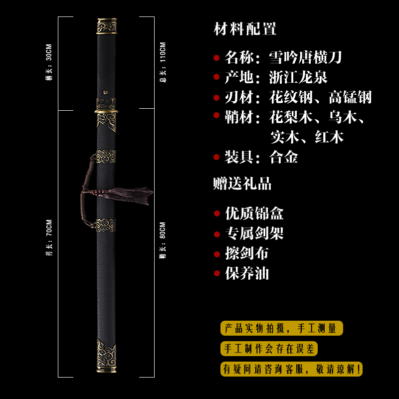 Longquan City Integrated Tang Sword Flower Pattern Steel Tang Horizontal Knife Town Residence Bao Jian Sword Long Version Hard Knife Sword Body Cold Weapon without cutting edge