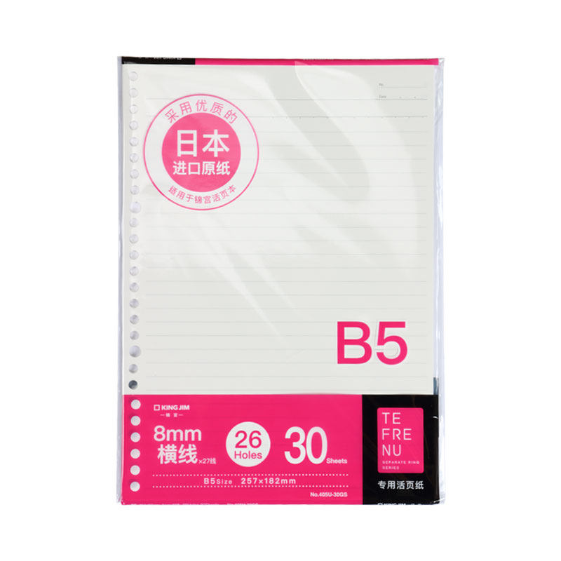 Japan's King Jim Kam Palace loose-leaf book for the core 26-hole horizontal line B5 loose-leaf paper A5 loose-leaf notebook 20-hole inner page for the core A4