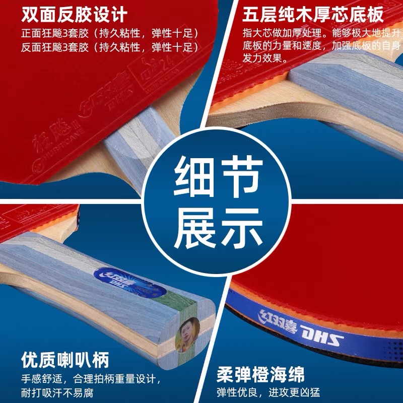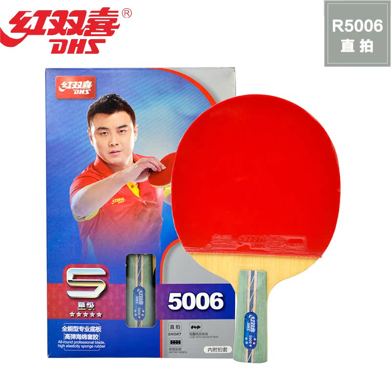 Red Double Happiness DHS five-star table tennis racket R series finished shot single R5002 all-round plate Professional competition