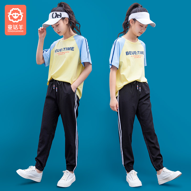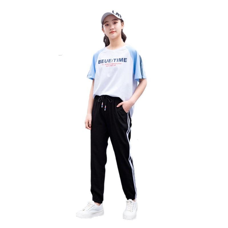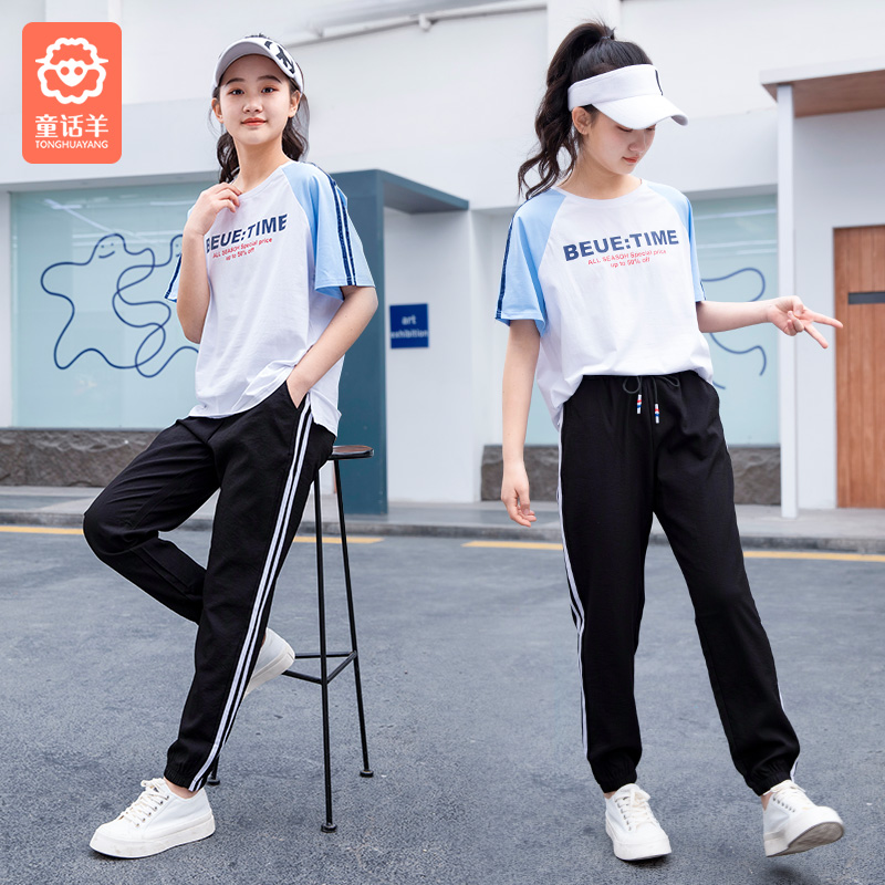 Female Great Boy Suit Short Sleeve Summer Thin 12 Primary and middle school students Sports loose 13 Girls Two sets 15-year-old damp