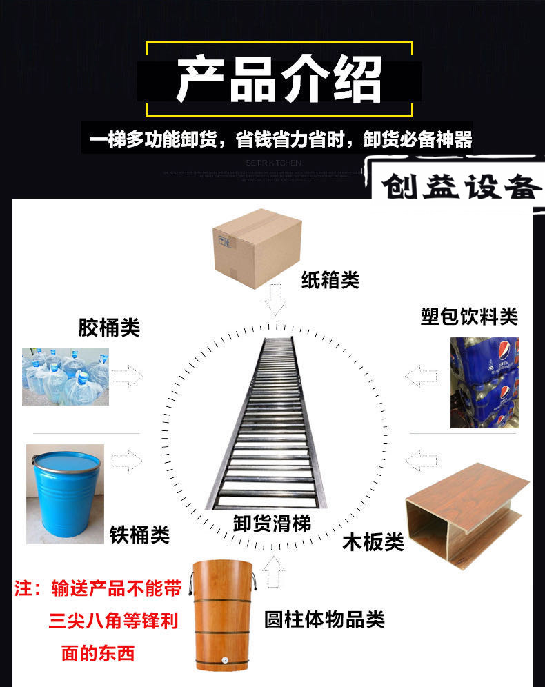 Discharge artifacts department store beverage drop slide slide galvanized stainless steel easily conveying handling no power roller