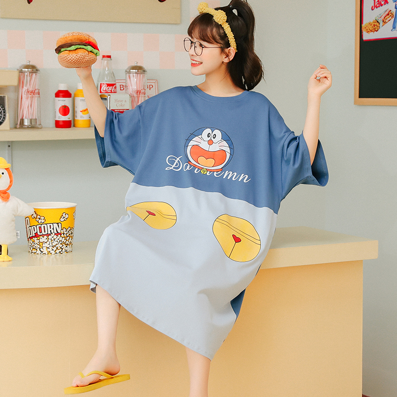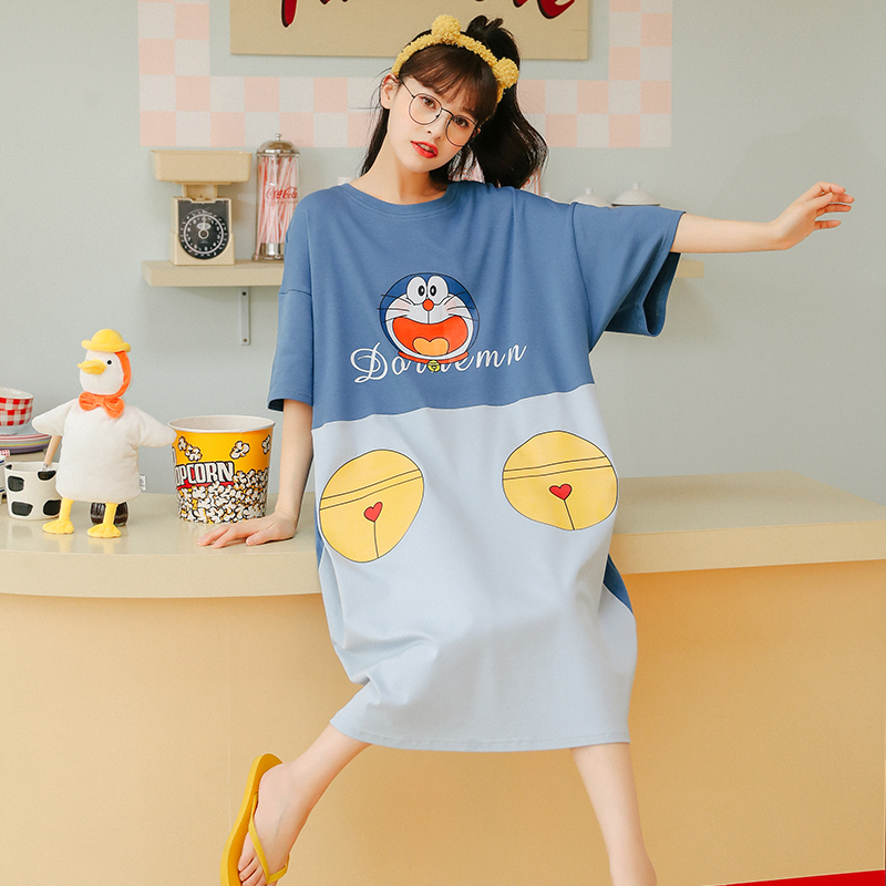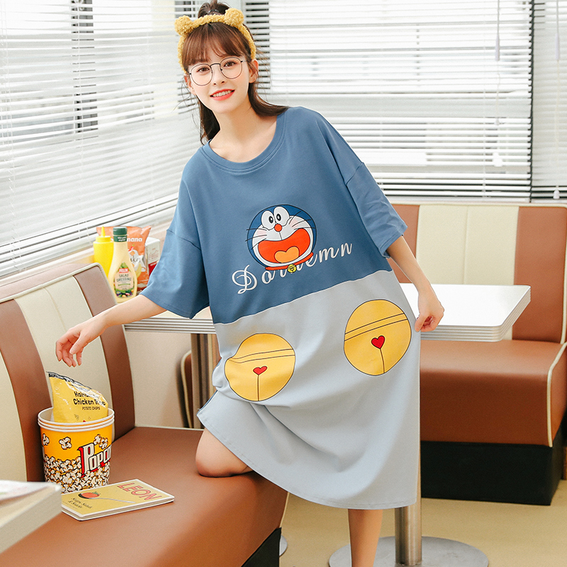 Sleeping Skirt Woman Summer Pure Cotton Short Sleeve Thin style Spring and autumn Home Clothing Cute Days Students Loose Pregnant Woman Sleepwear Summer