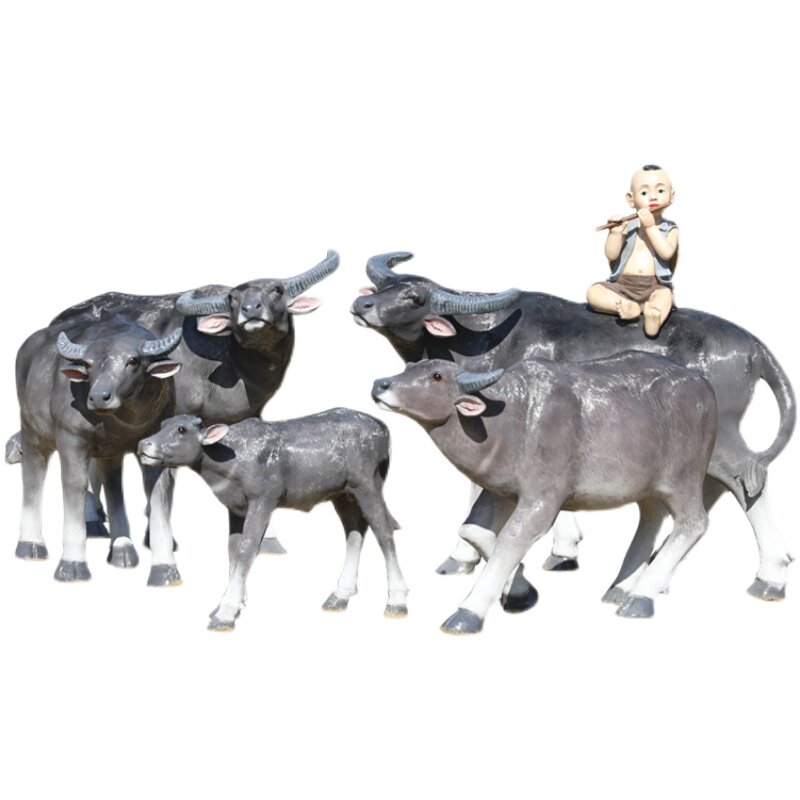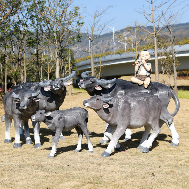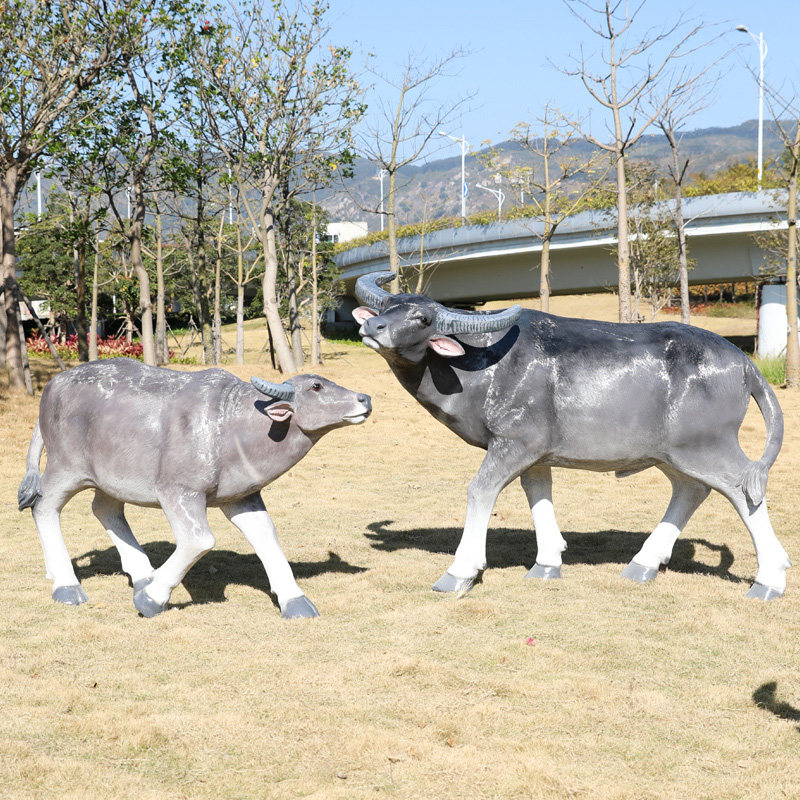 FRP simulation buffalo ornament outdoor large animal imitation copper cow sculpture park forest landscape farming farm lawn