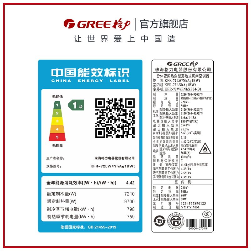 (Gree official) New level inverter heating and cooling 3 horses household air conditioner living room vertical cabinet Yunjin II