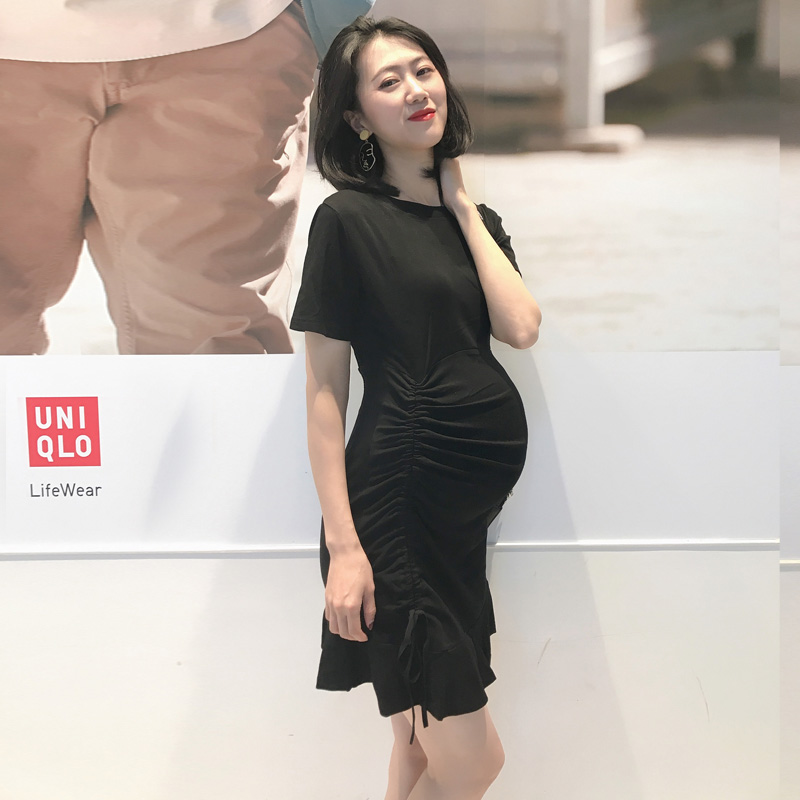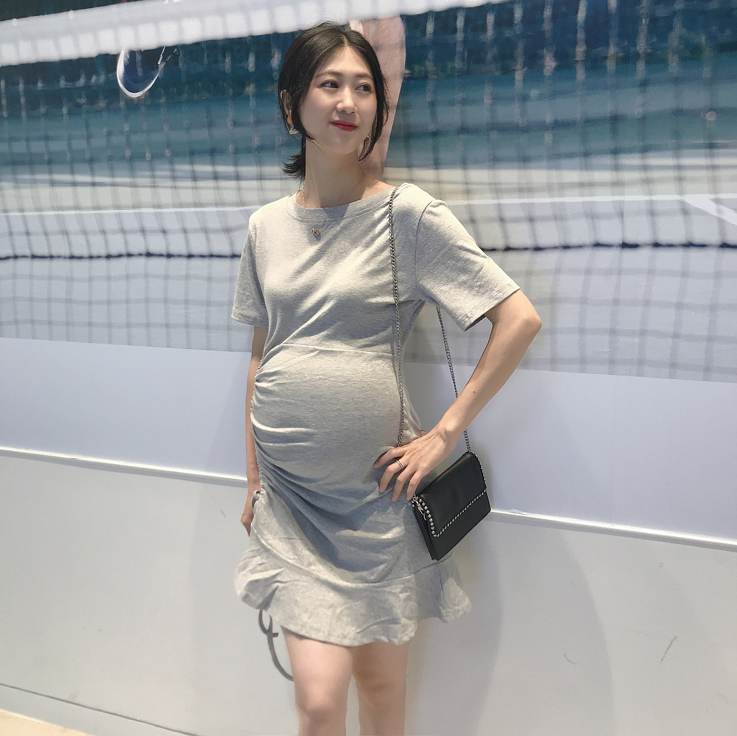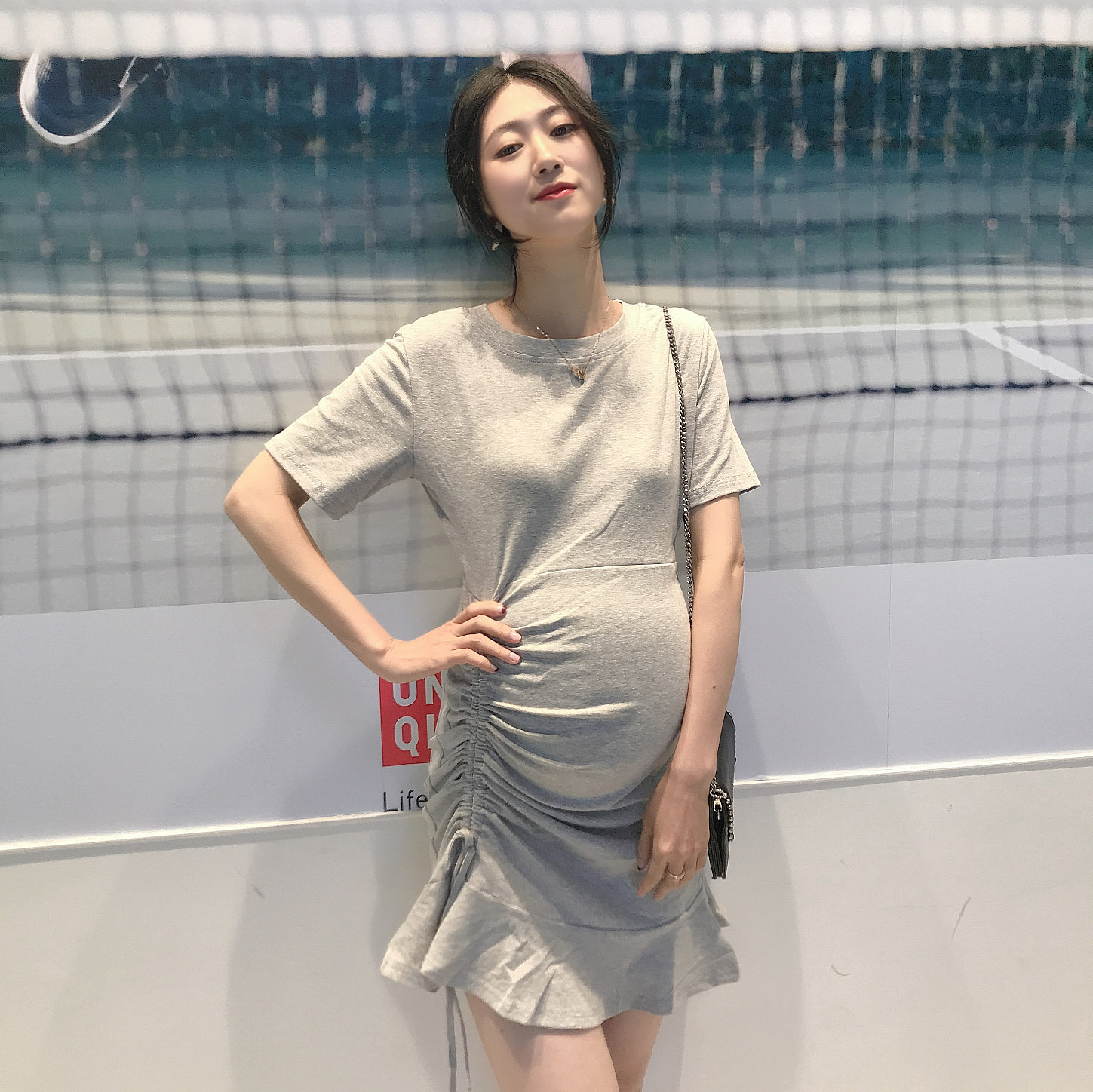 Spicy Mother Pure Cotton Pregnant Woman Foreign Dress Sashimi With Tail Skirt Small 150 Pregnancy Woman Dress Kit Bag Hip skirt Summer thin