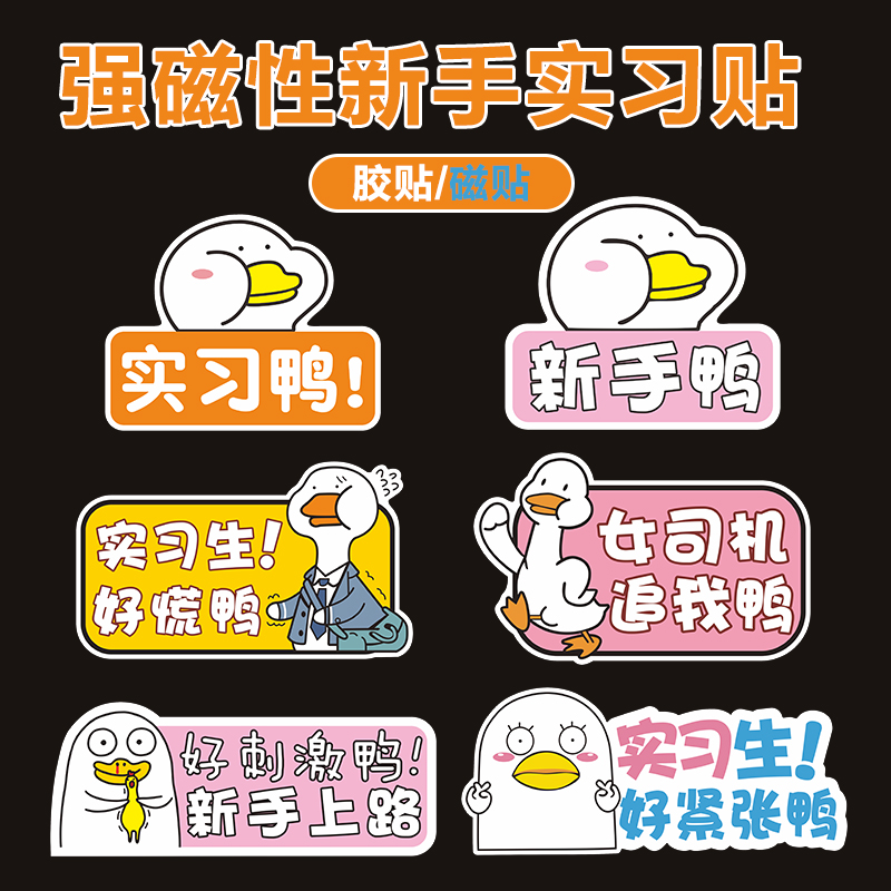 Car internship period car stickers female driver novice on the road sign reflective magnetic stickers Cute duck stickers car tail magnetic suction