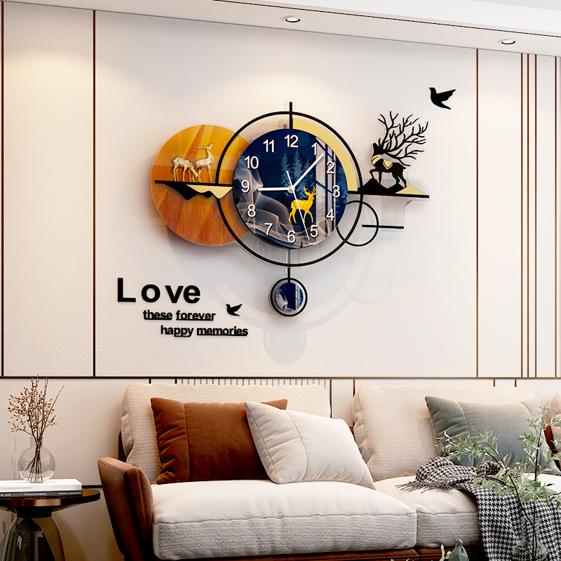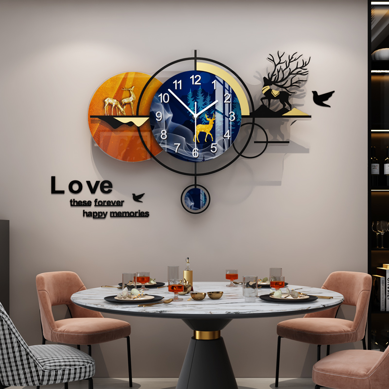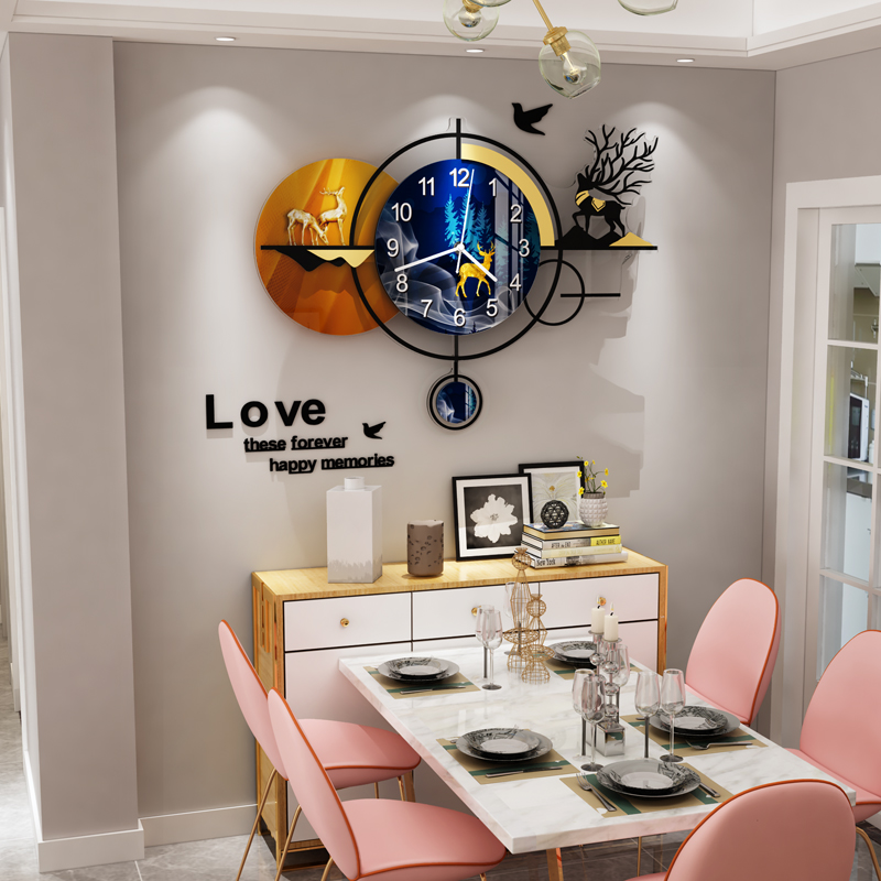 Nordic restaurant light luxury wall hanging wall clock modern simple and stylish living room clock home creative wall hanging clock lighting