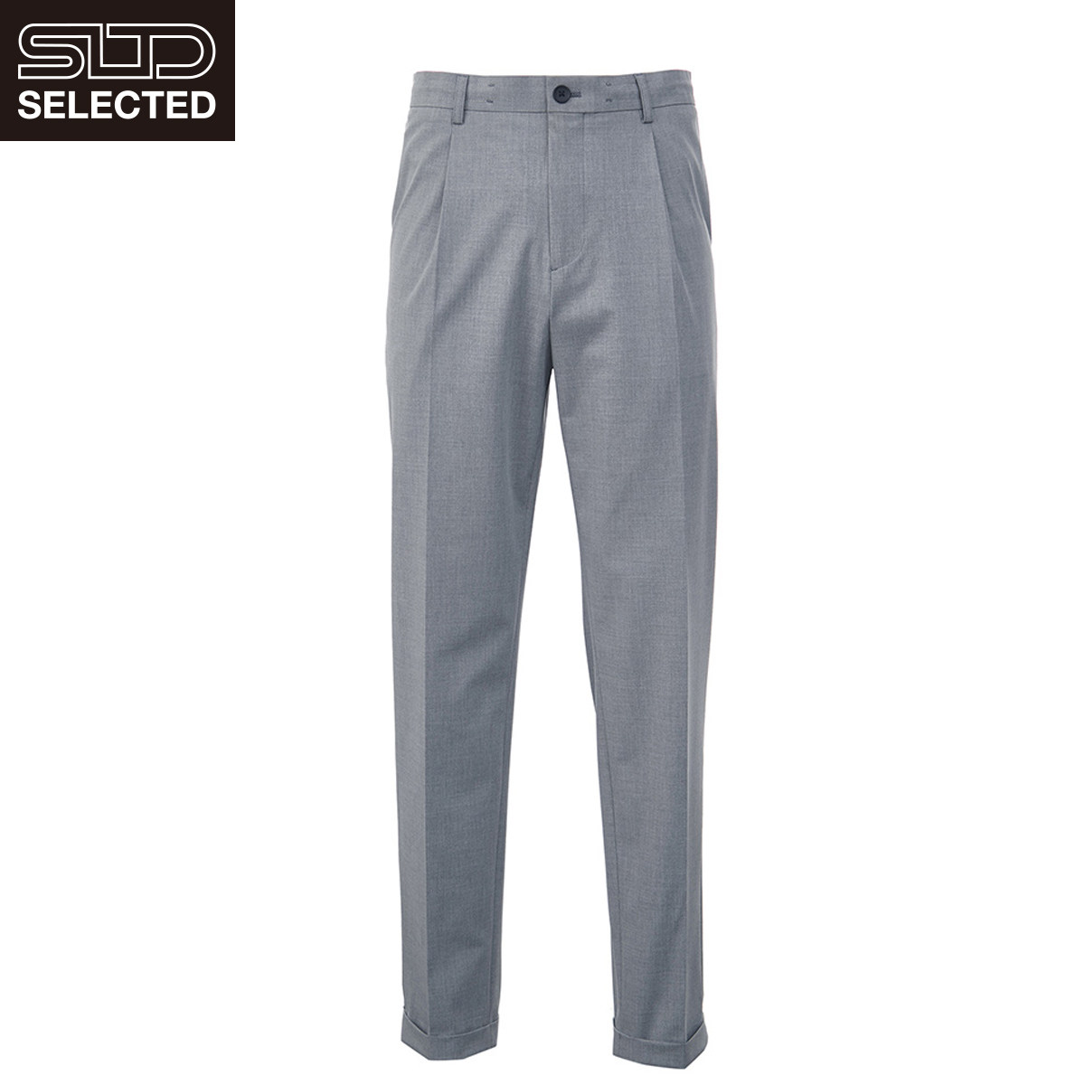 SELECTEDSELECMED New pure colour pleat-side trendy business casual tapered pants Western pants men S) 42126A003