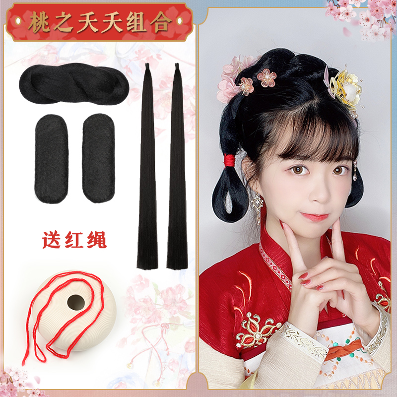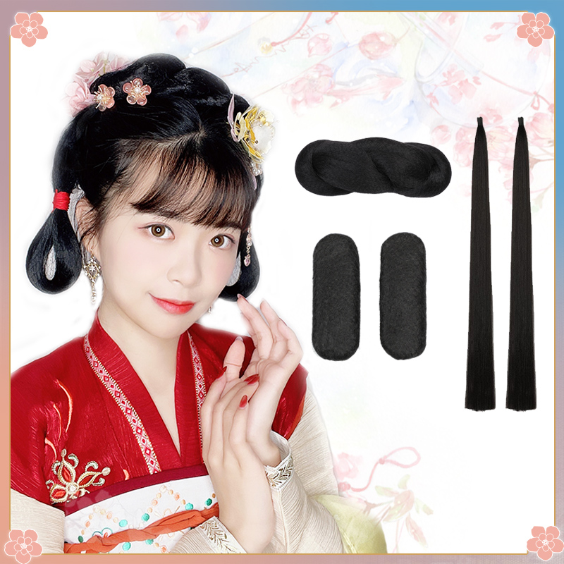 Antique wig full hair silk fairy Hanfu Ming system skirt daily ancient costume bottomless all-match twist bun bun hair bundle
