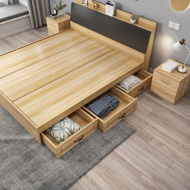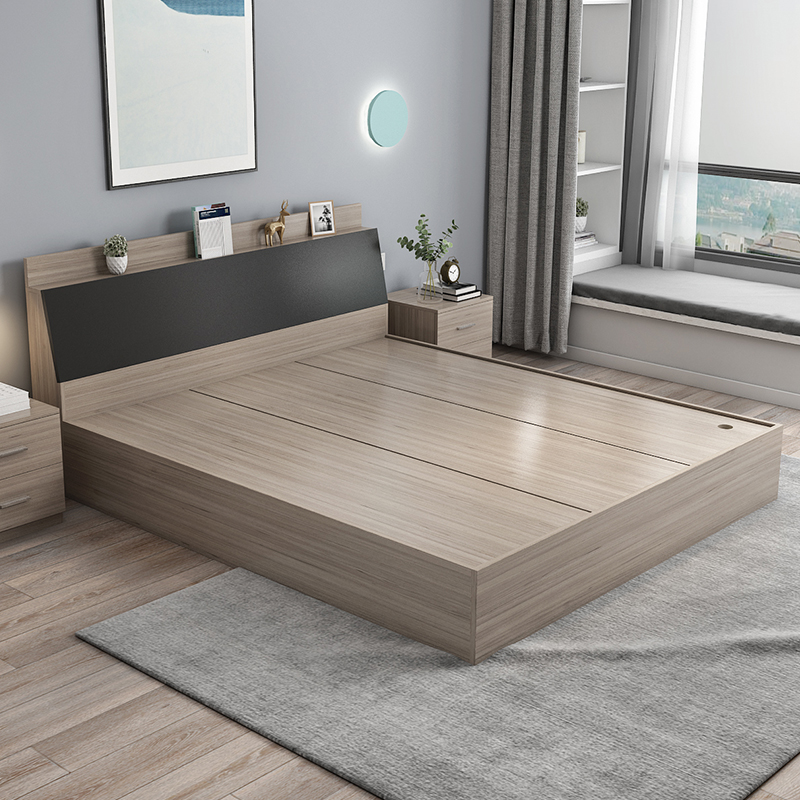 Plate bed modern simple double bed 1.8 meters tatami bed 1.5 meters 1.2 meters rental house high box storage bed