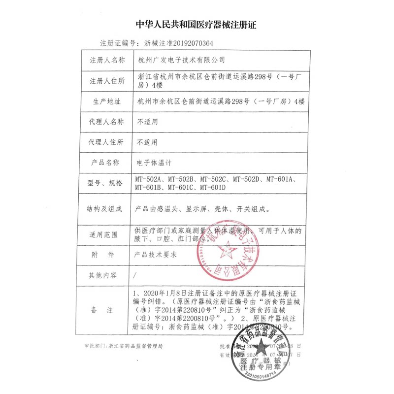 The Zhejiang Machinery is approved for 20192070364