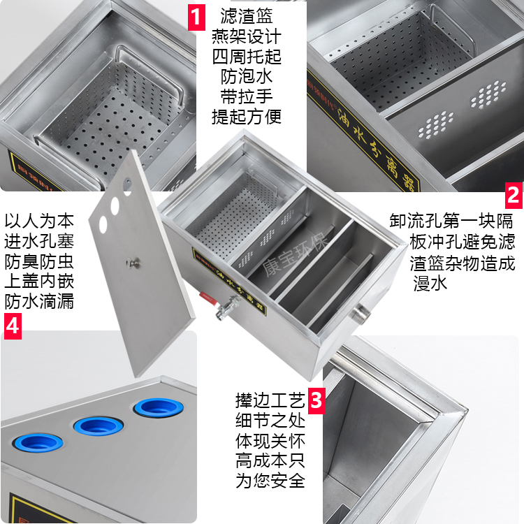 Grease trap oil-water separator small filter stainless steel catering kitchen commercial large-scale three-stage sedimentation buried